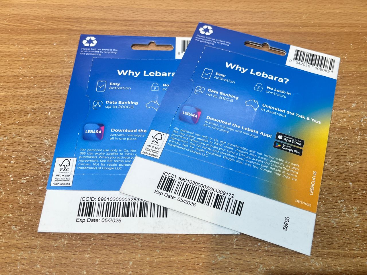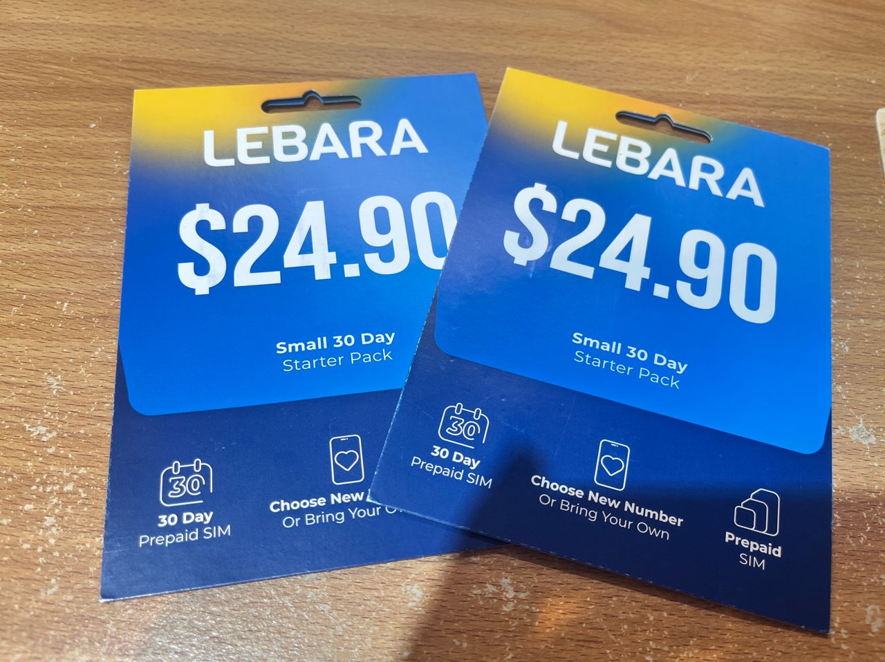 故出售澳洲LEBARA實體SIM預付卡2張