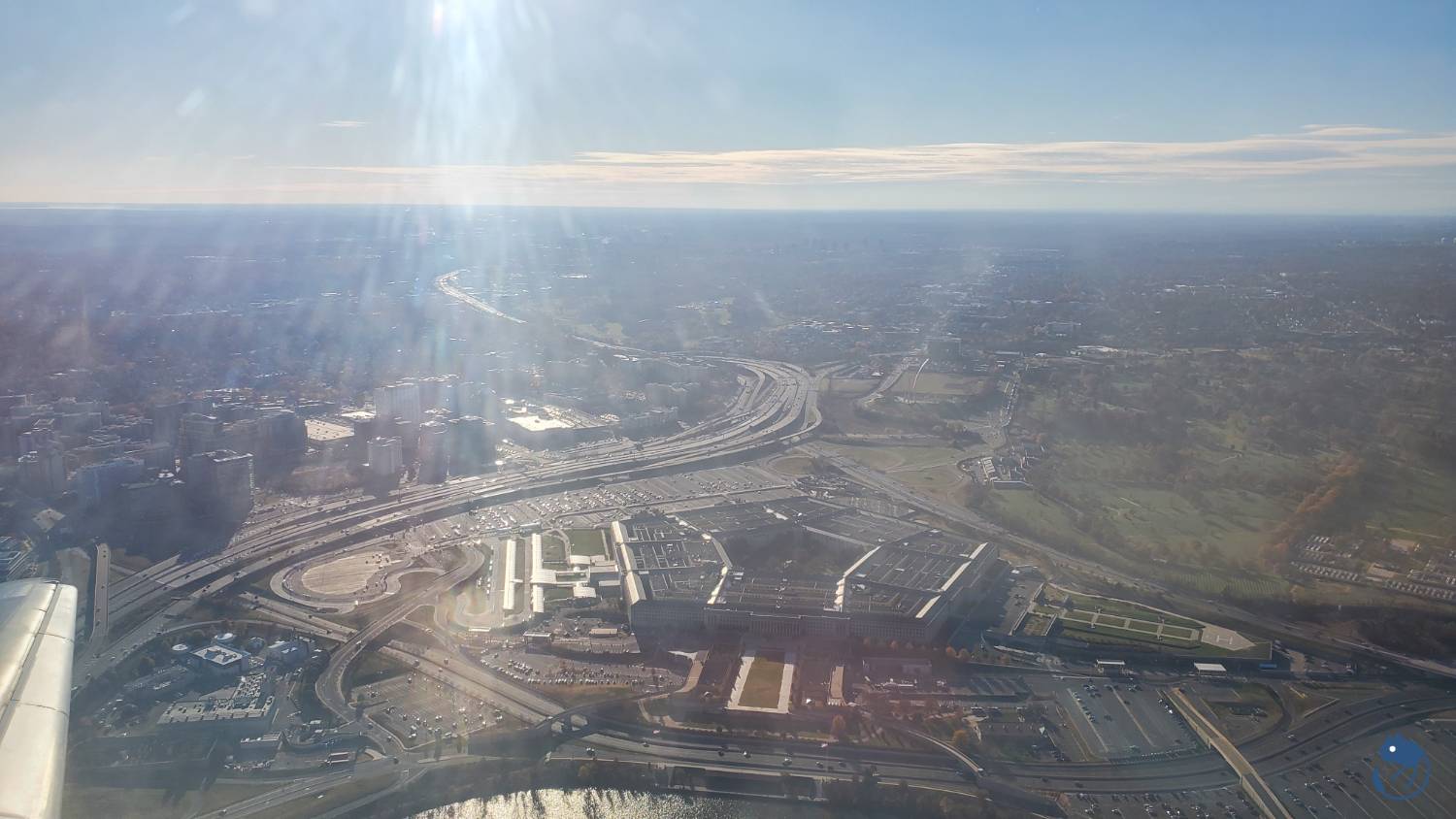 01跑道端一起飛,就會看到五角大廈還有右邊的阿靈頓國家公墓。