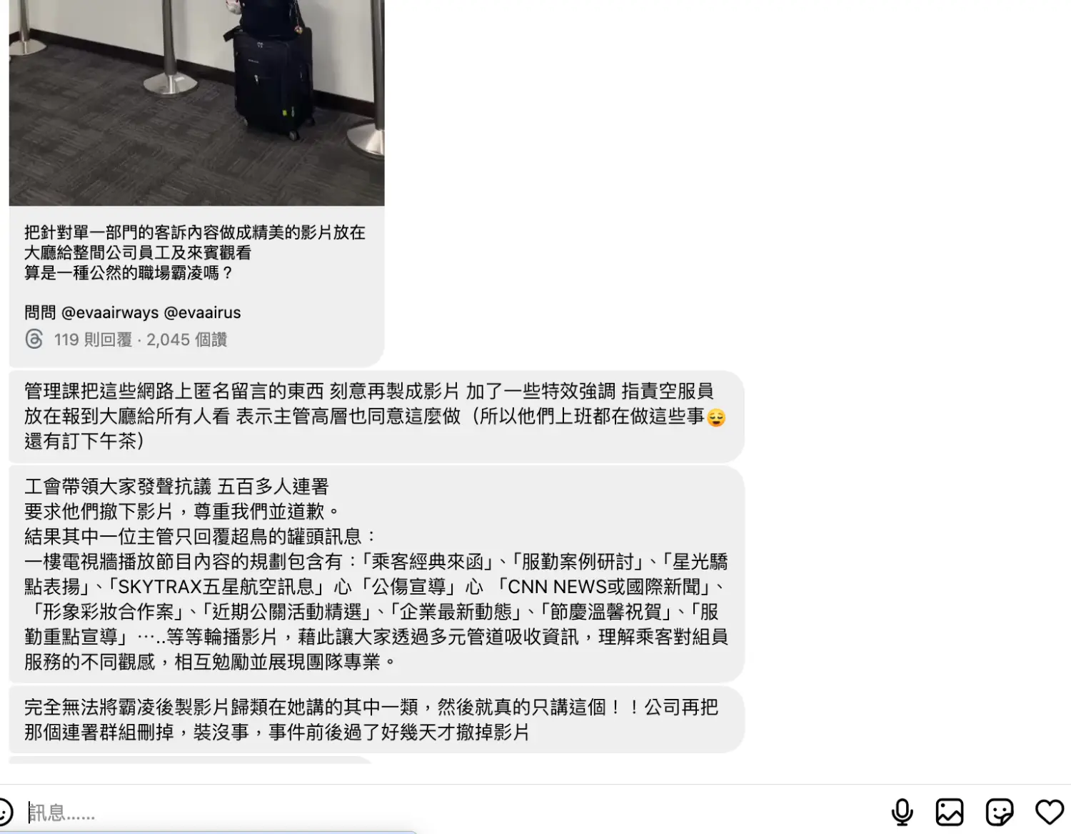 標題: [爆卦] 長榮把客訴剪成公審影片放大廳 並刪連署群