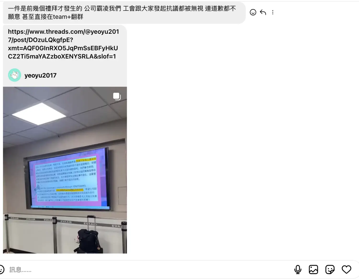 「前幾個禮拜才發生的 公司霸凌我們 工會跟大家發起抗議都被無視 連道歉都不願意
