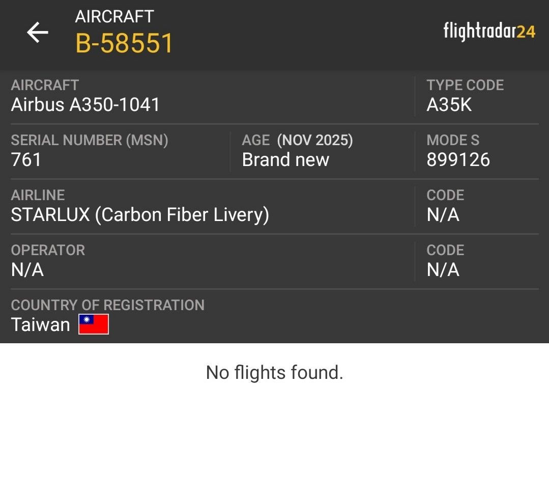 Flightradar24網站也完成B-58551註冊號的相關建置