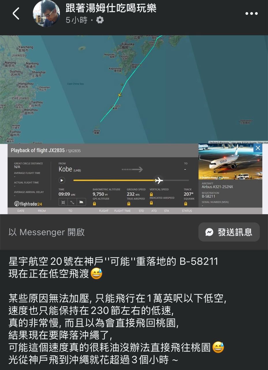 這台低空飛行並降落沖繩
