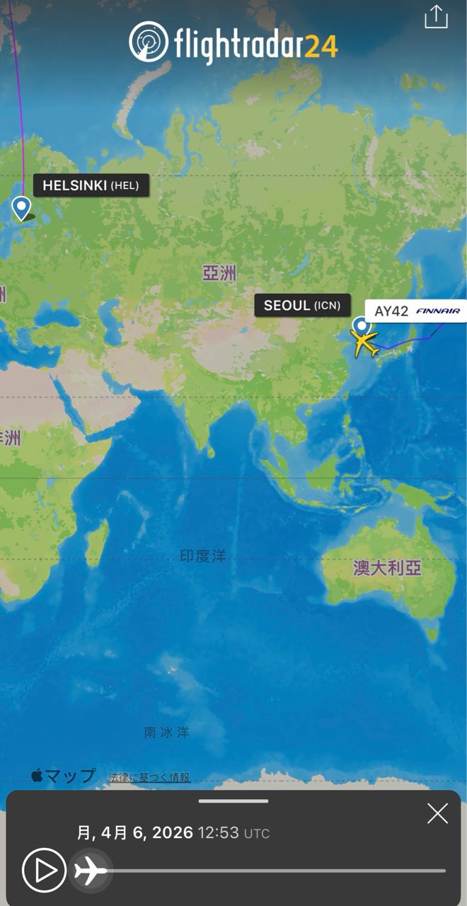 話說芬蘭航空這班首爾航班好像沒有固定一套航路,不像成田、羽田、關西固定往東北飛