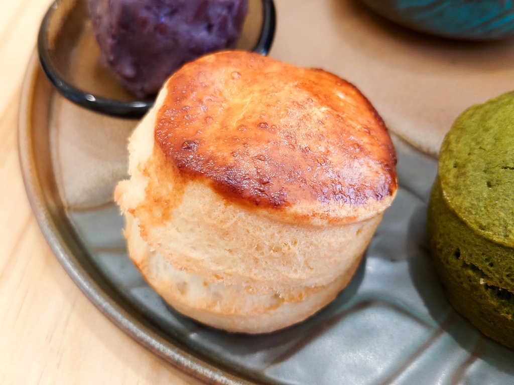 烘烤過後的抹茶司康口感外層酥脆內部鬆軟,