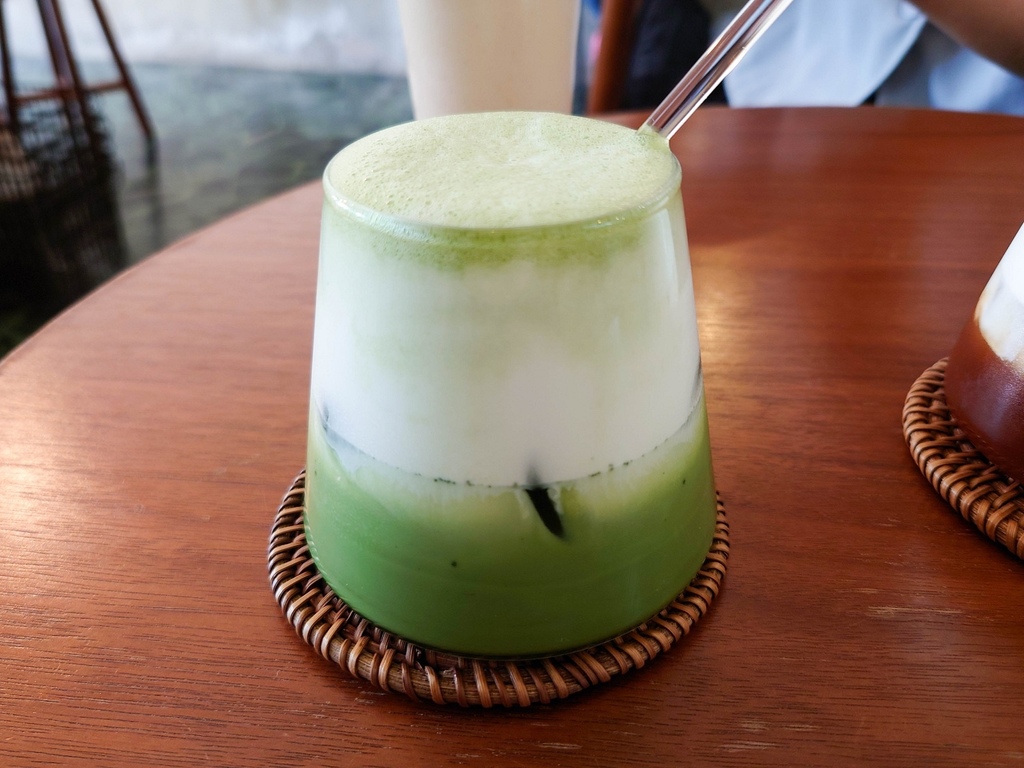抹茶牛奶的抹茶味就有比較濃郁些了,