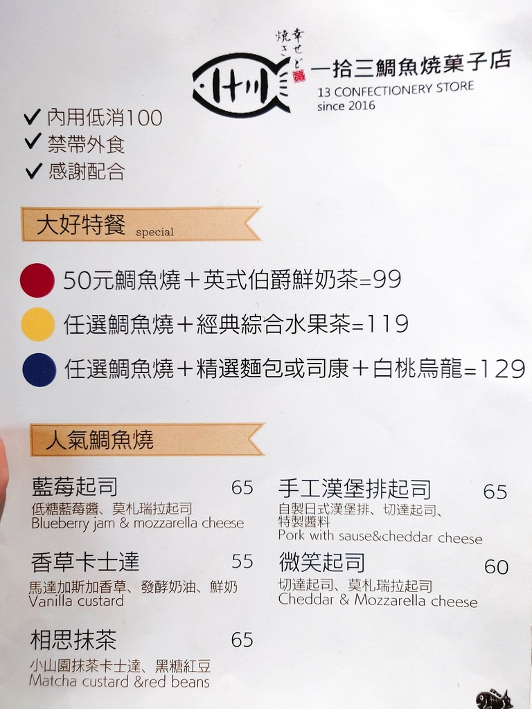 「一拾三鯛魚燒菓子店」各口味的鯛魚燒都相當美味又實在,