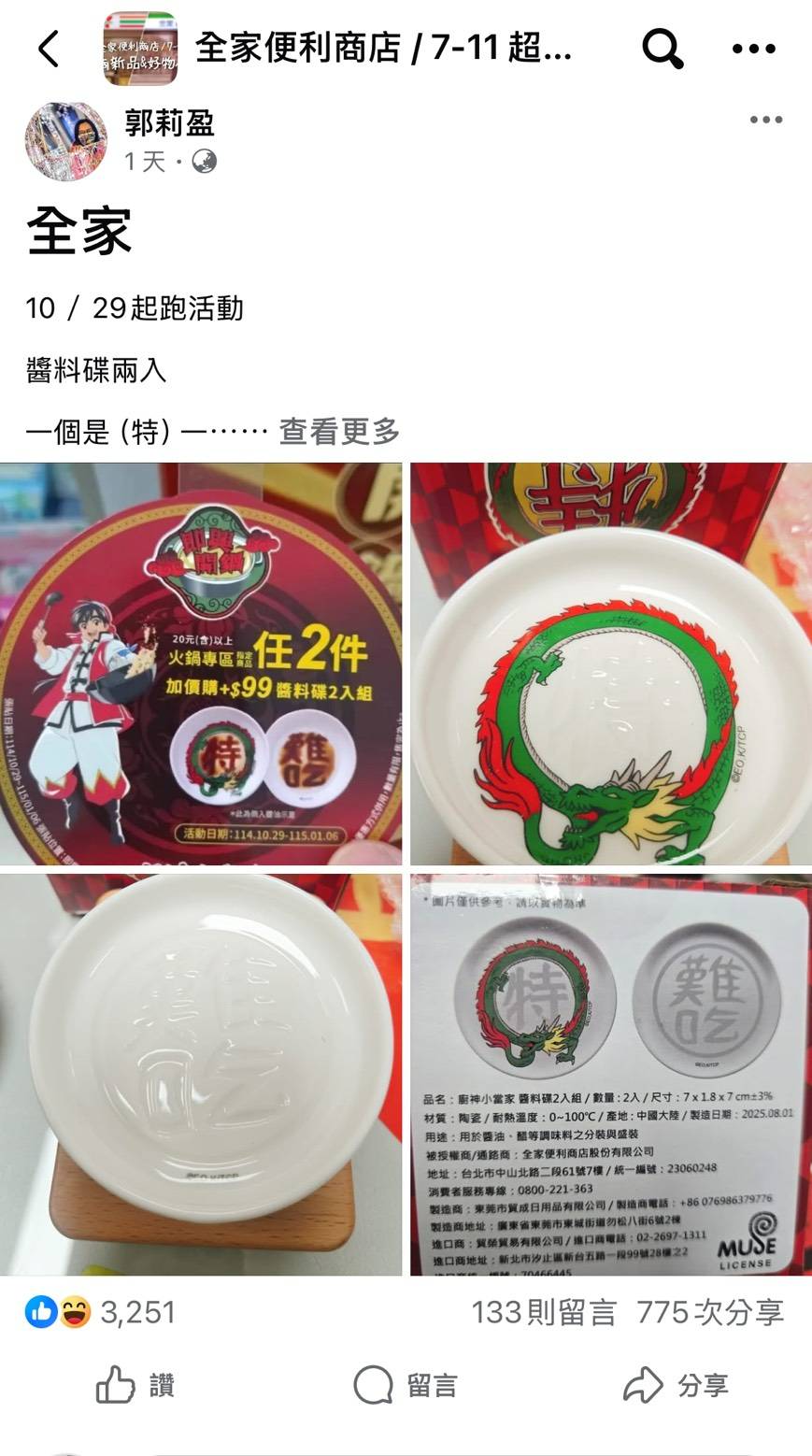 [情報] 10/29 全家開賣小當家醬油碟 (特級廚師&