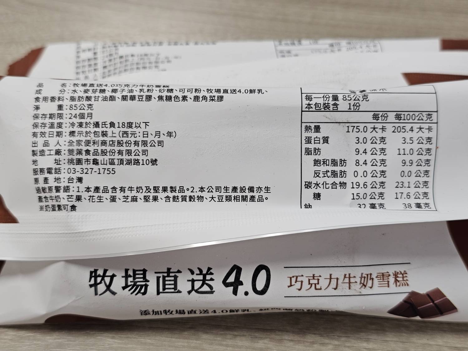 [商品] 全家 牧場直送4.0巧克力牛奶雪糕