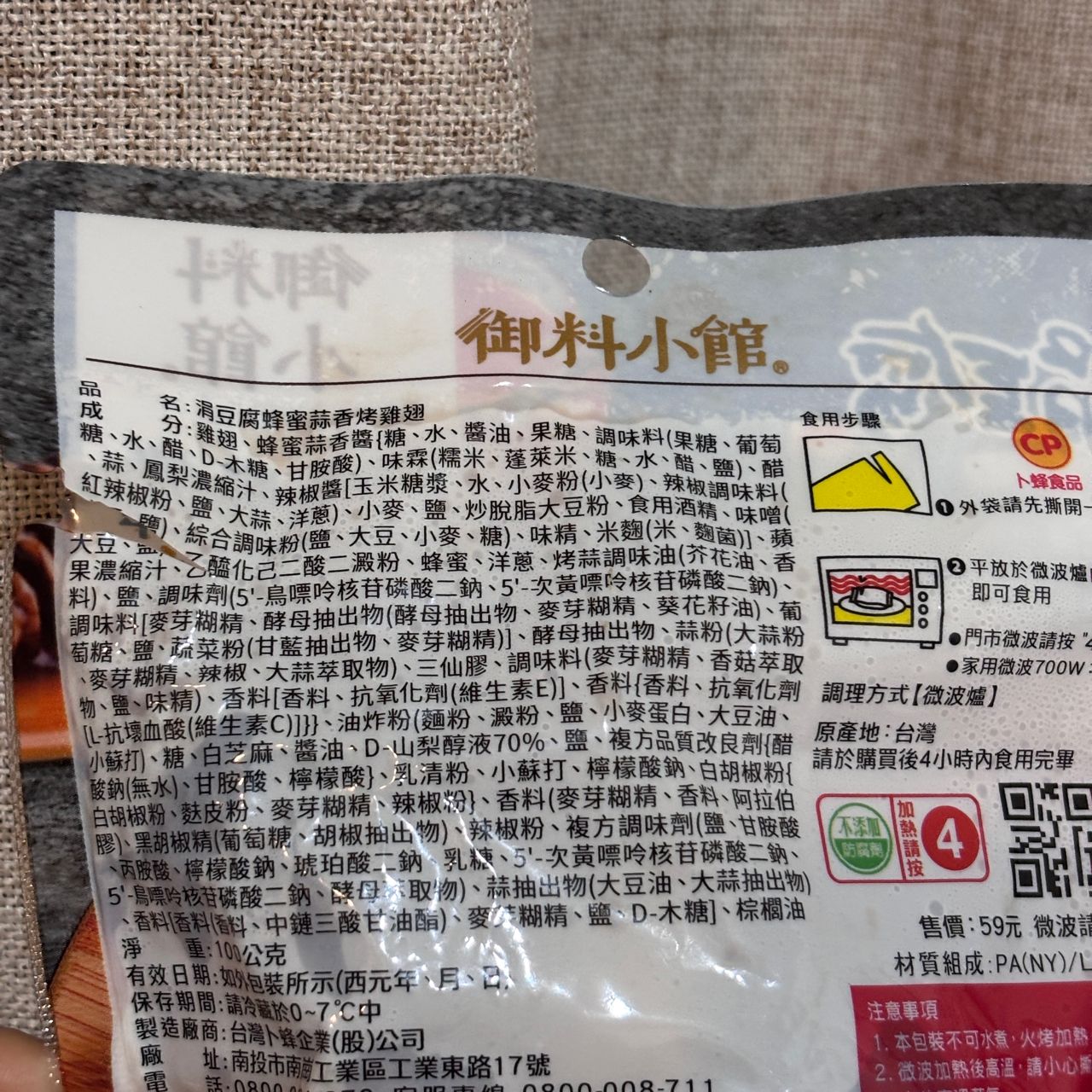 【商品名稱/價格】:涓豆腐蜂蜜蒜香烤雞翅/59元