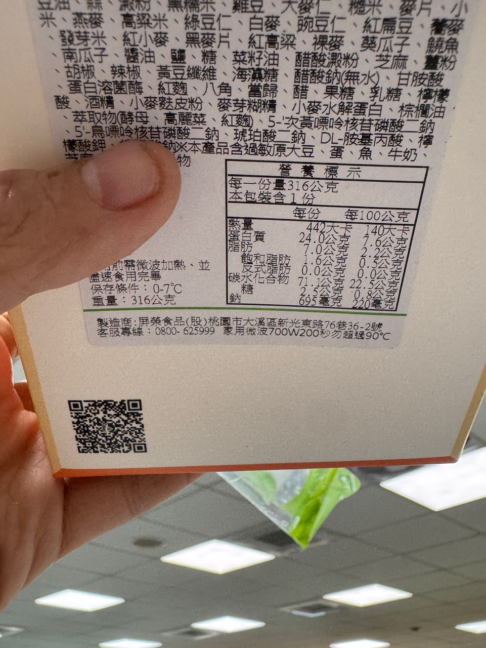 【規格/內容物/熱量】:442大卡/316公克/蛋白質:24克