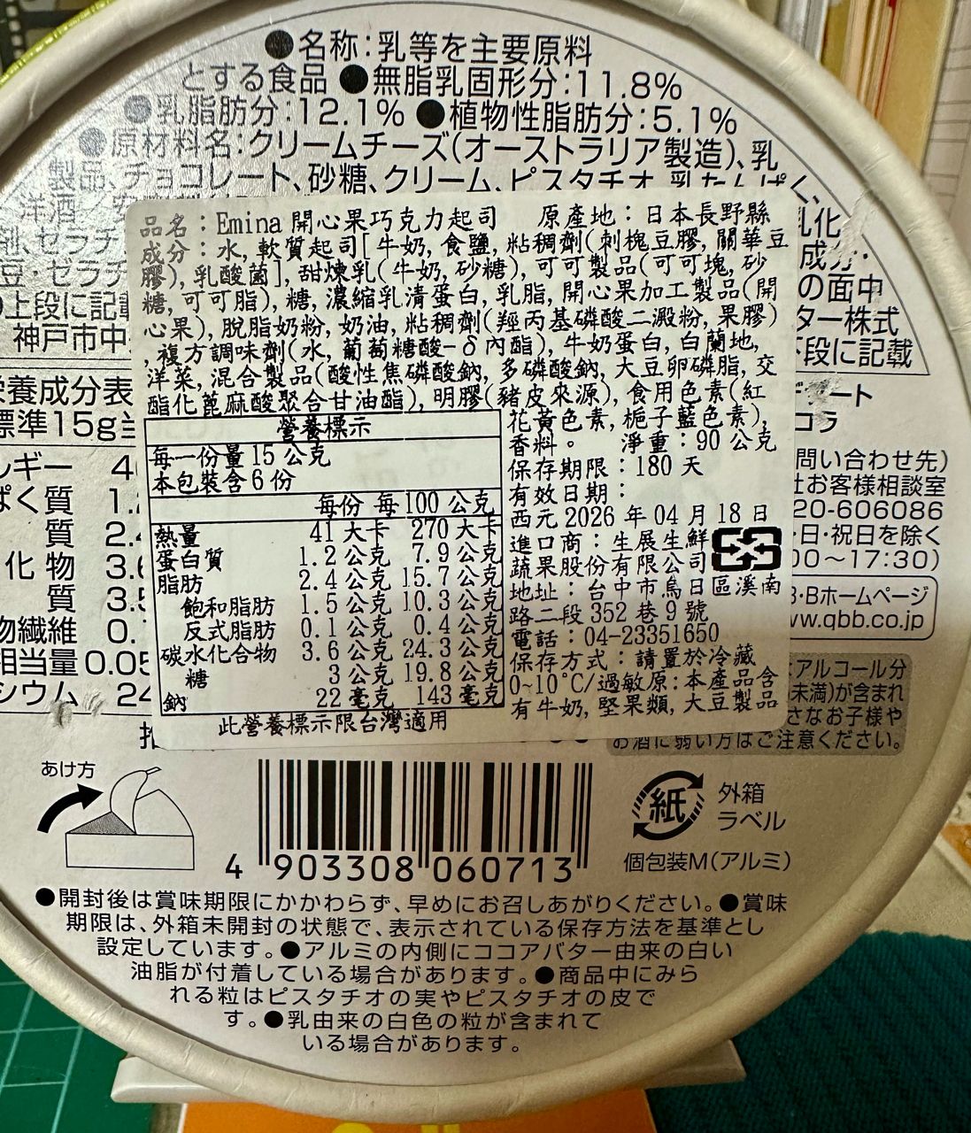 【商品名稱/價格】:Emina開心果巧克力起司/$130