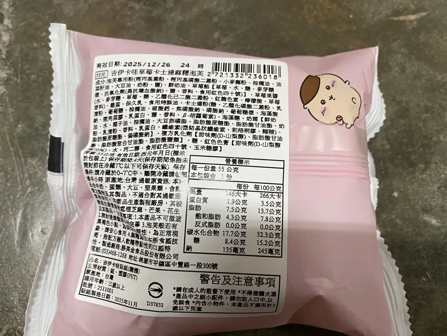 【商品名稱/價格】:吉伊卡哇草莓卡士達麻糬泡芙 /55