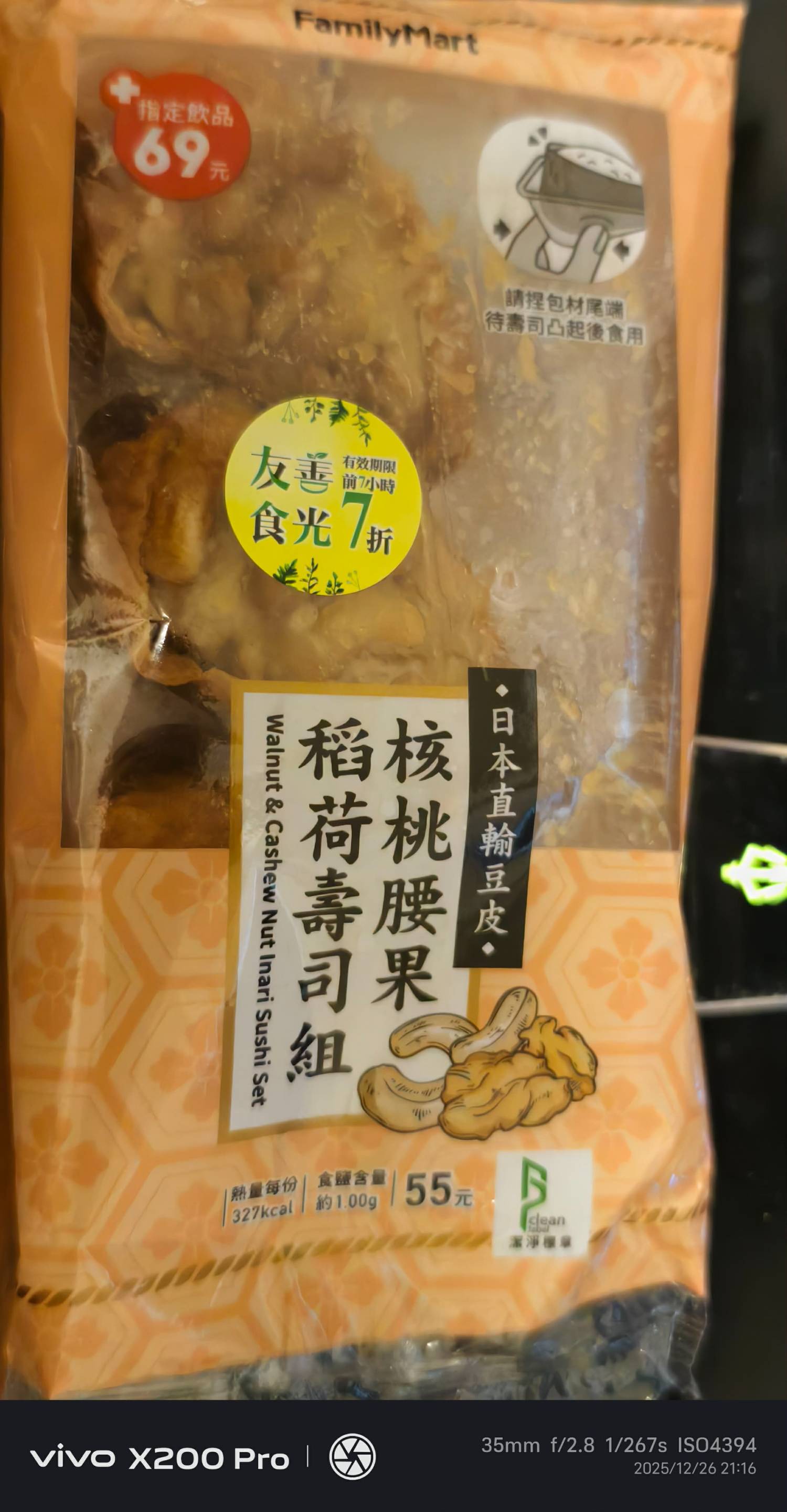 今天剛好看到全家有打折的稻禾壽司就買了一組