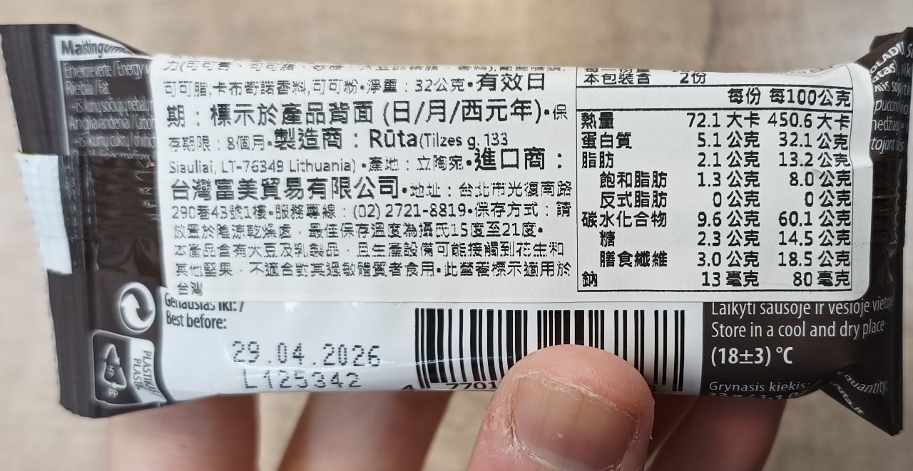 【商品名稱/價格】:露特巧克力風味蛋白棒卡布奇諾風味 69元