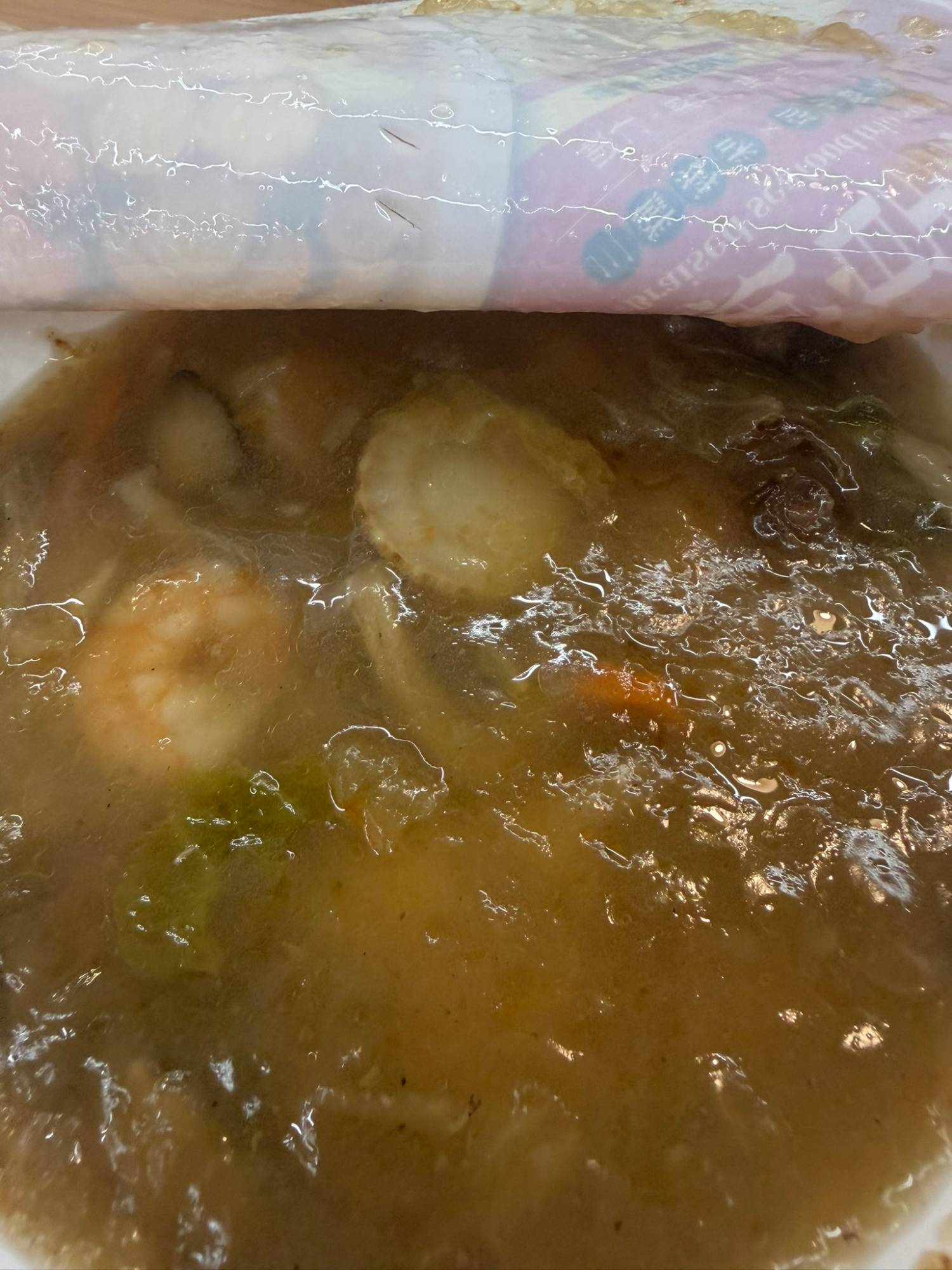 致商品本身加熱不完全,整體溫度偏低,還可能在撕開封膜時,仍有湯凍尚未融化的情形