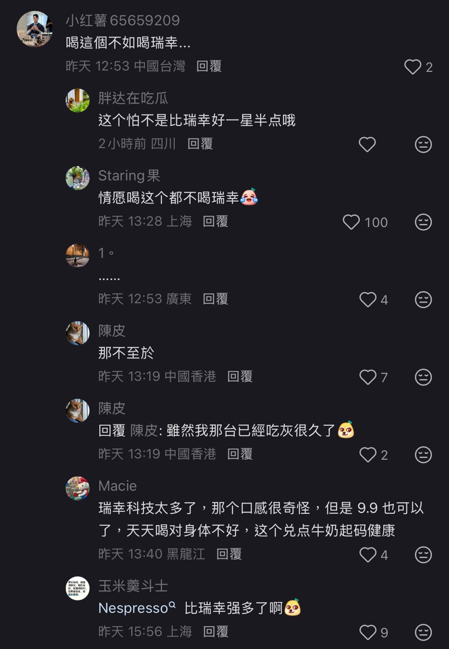 我的留言是:喝這個不如喝瑞幸