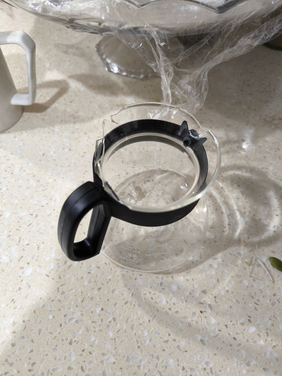 昨晚才用完的hario下壺,好端端放在廚房吧台上,附近也沒有其他電器用品。