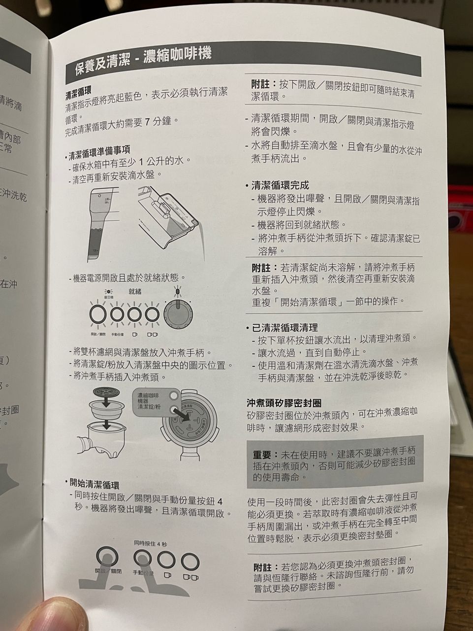 因為連休才回家與女友一起作拉花,第一次看到Clean亮起,趕緊翻閱說明書看如何處理