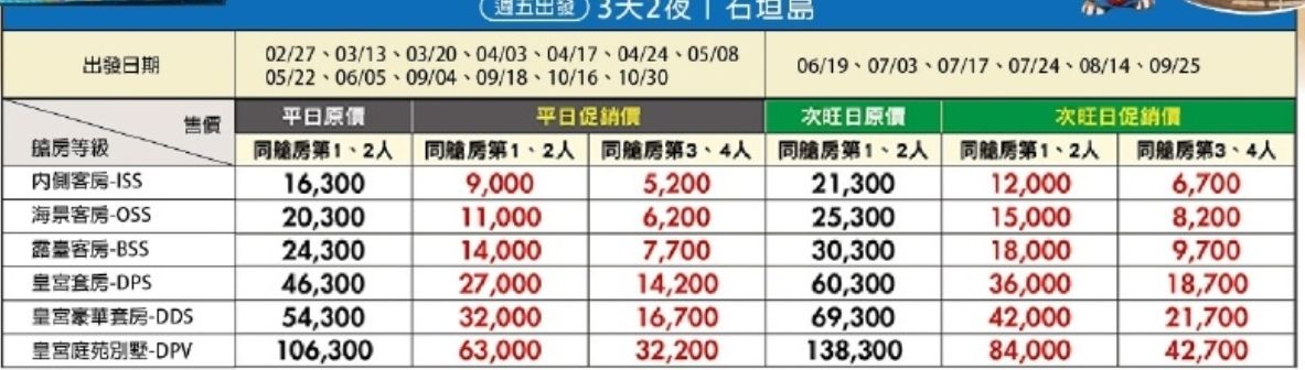 ▲以此為基礎行程,可隨意加價更換郵輪行程