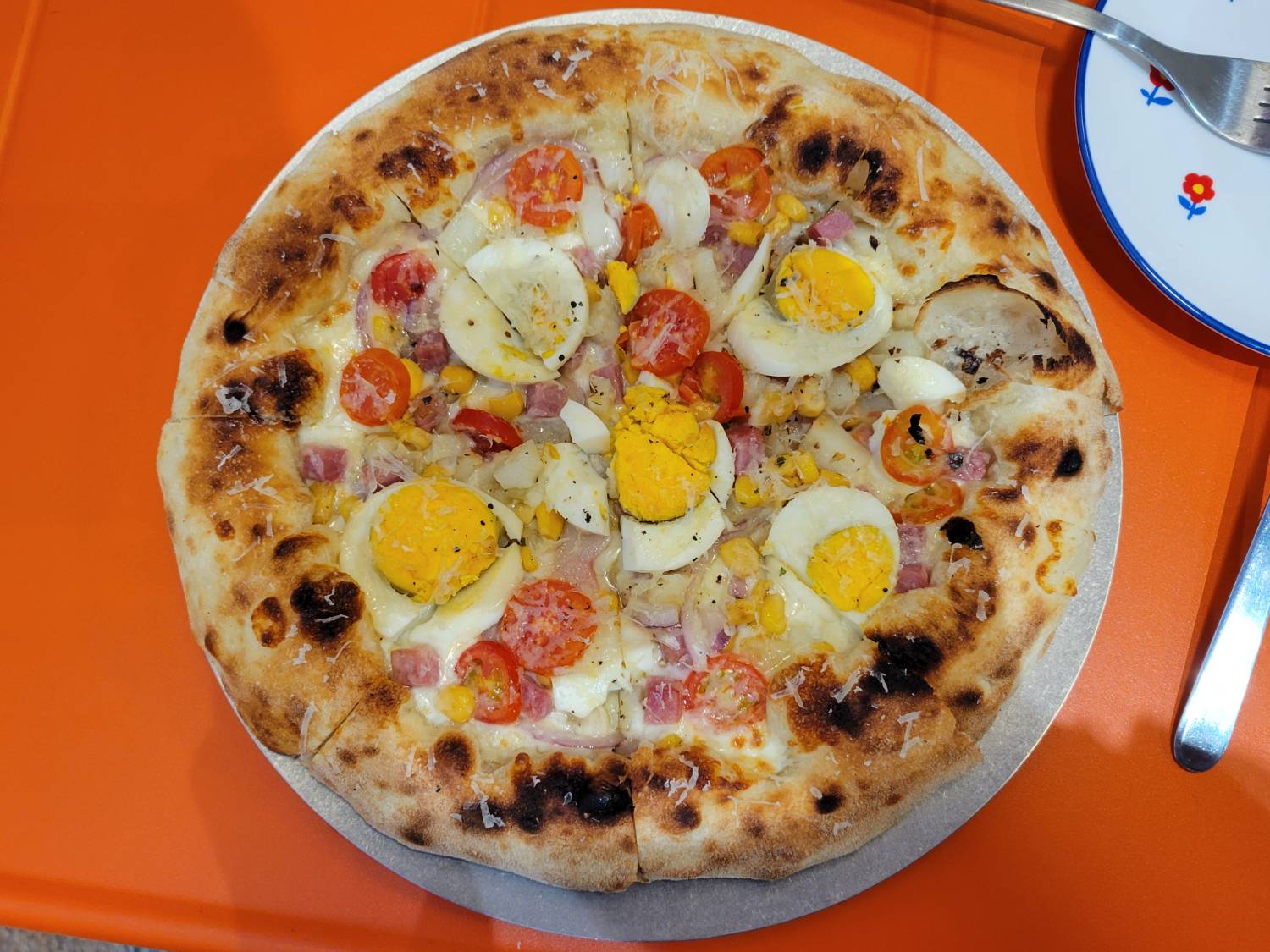 配料為馬扎瑞拉、厚切培根、馬鈴薯、水煮蛋、番茄及帕