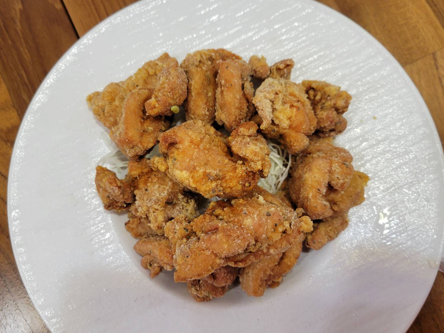 招牌雞塊是類似唐揚雞的料理,份量給得大方。肉質彈實