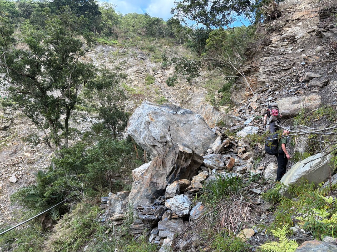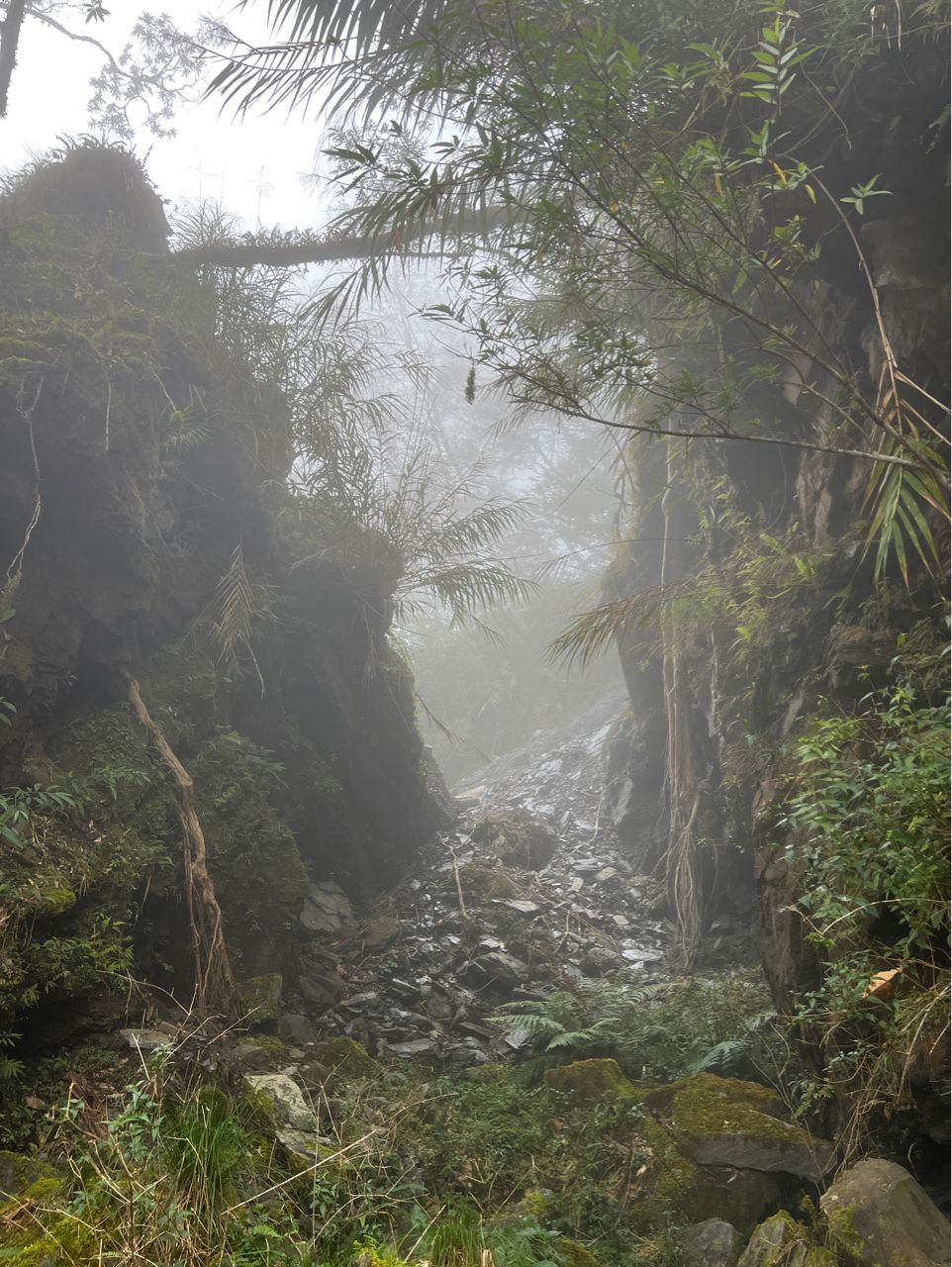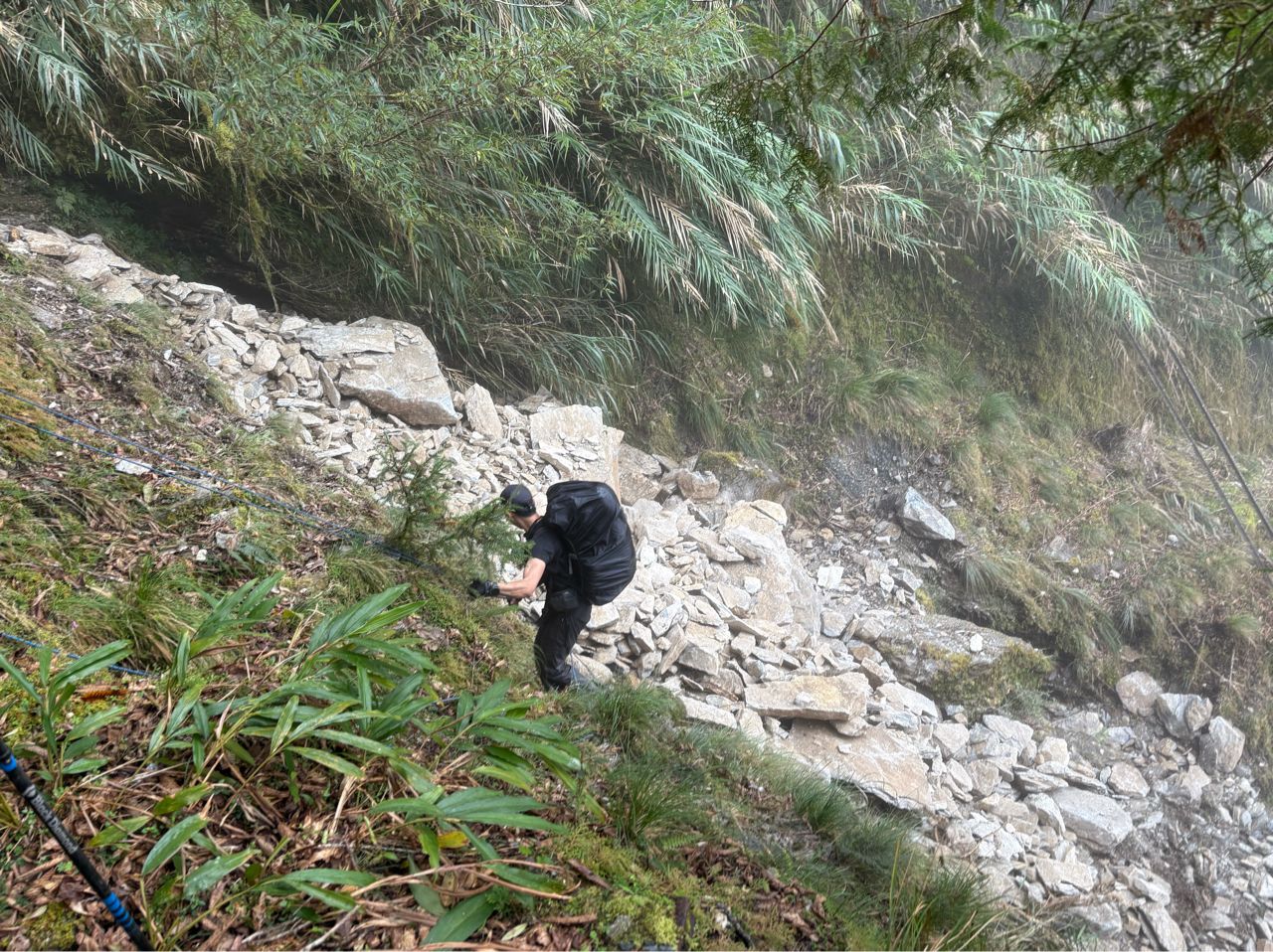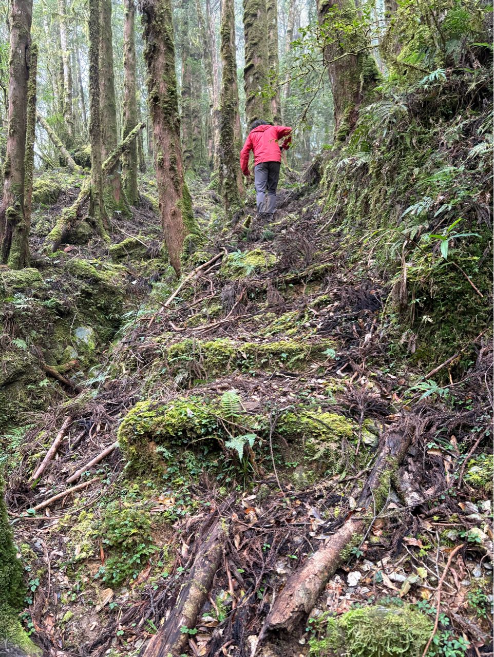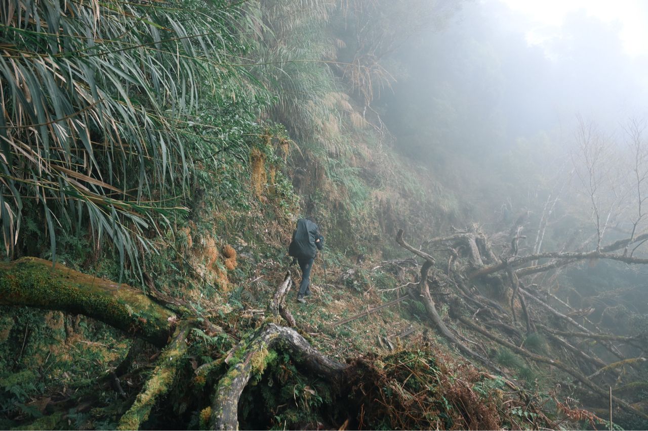 內心感嘆著:山林是如此脆弱,山一直都在,但路不一定在,趕緊出發吧