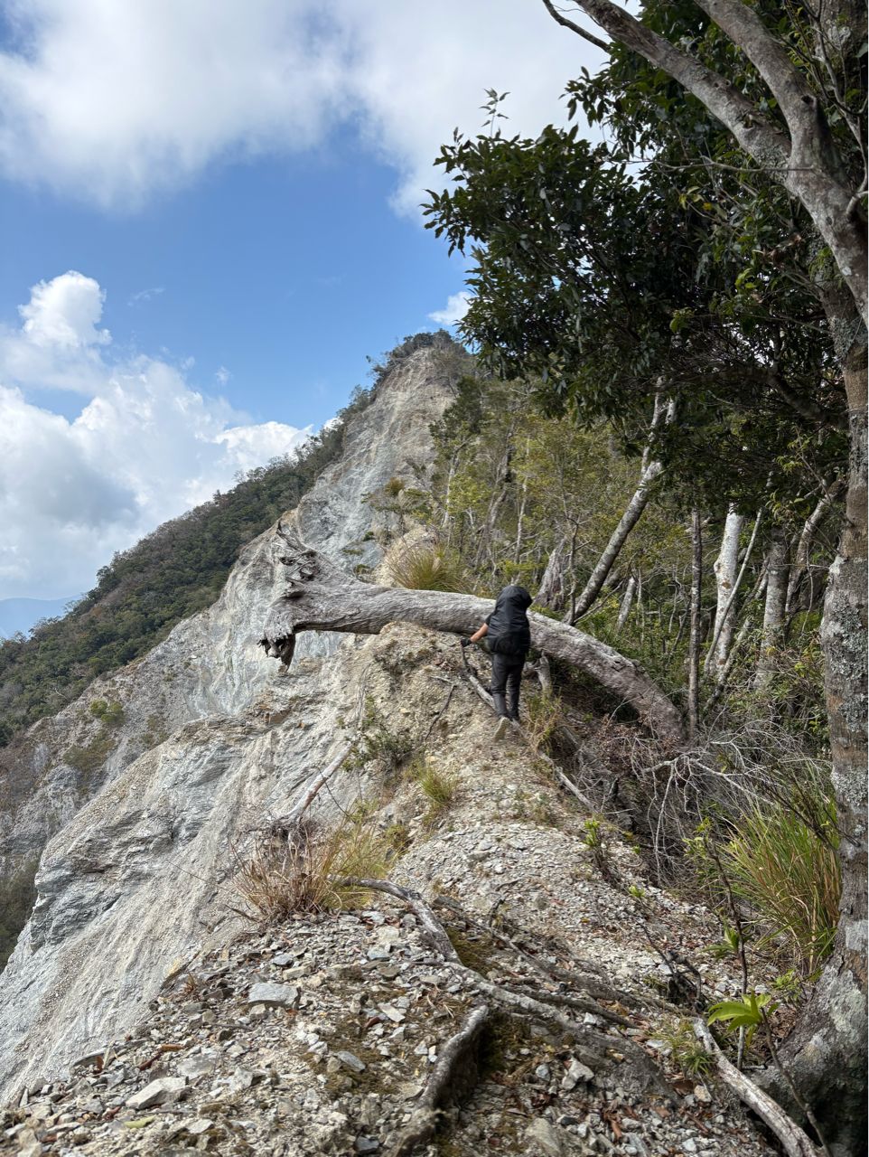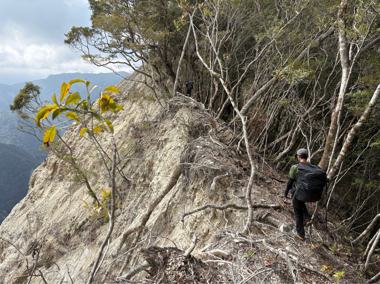 從崩壁上切接回稜線