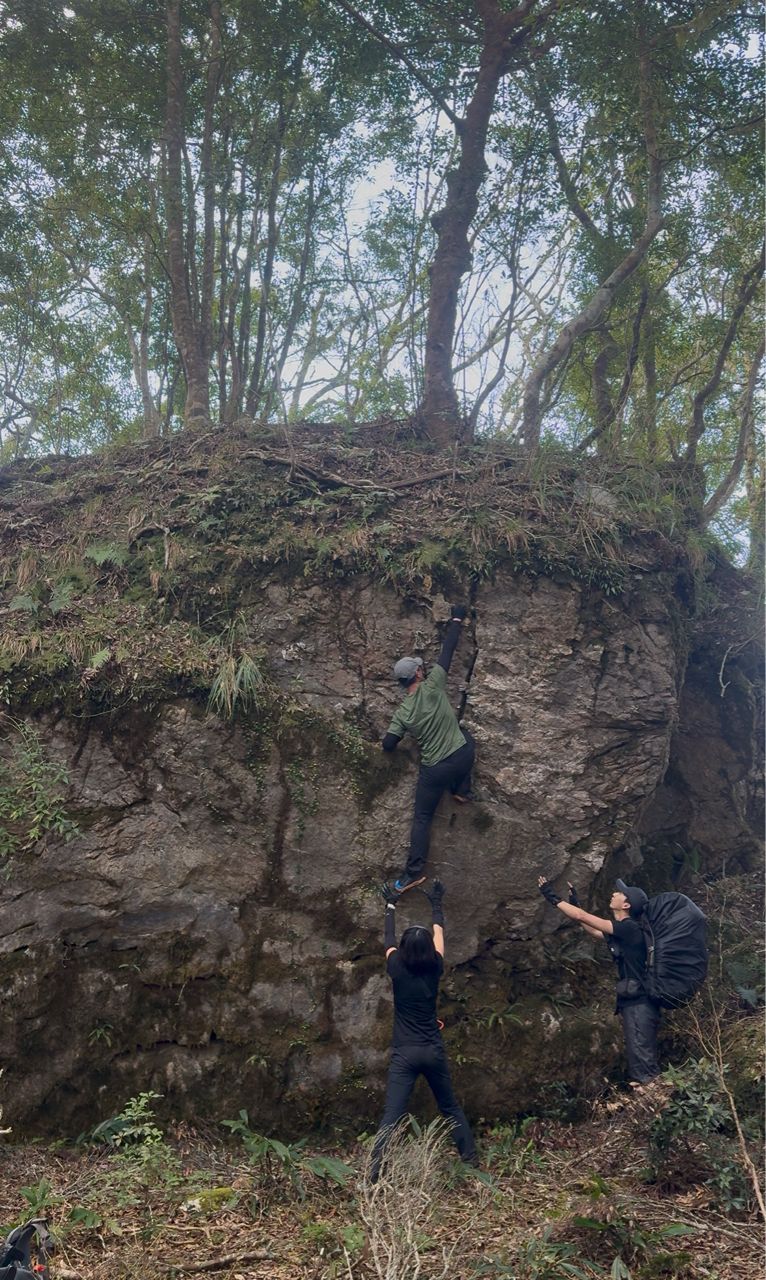 後面隊友協助架繩,但只有我上吊帶確保,對於破碎地形還是會抖抖的