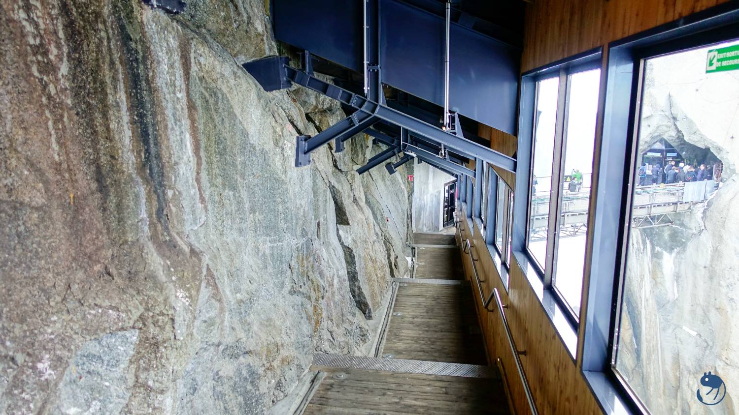 從海拔1,033公尺的夏慕尼南針峰纜車站,大概8分鐘左右就到了2,317公尺的纜車中間站