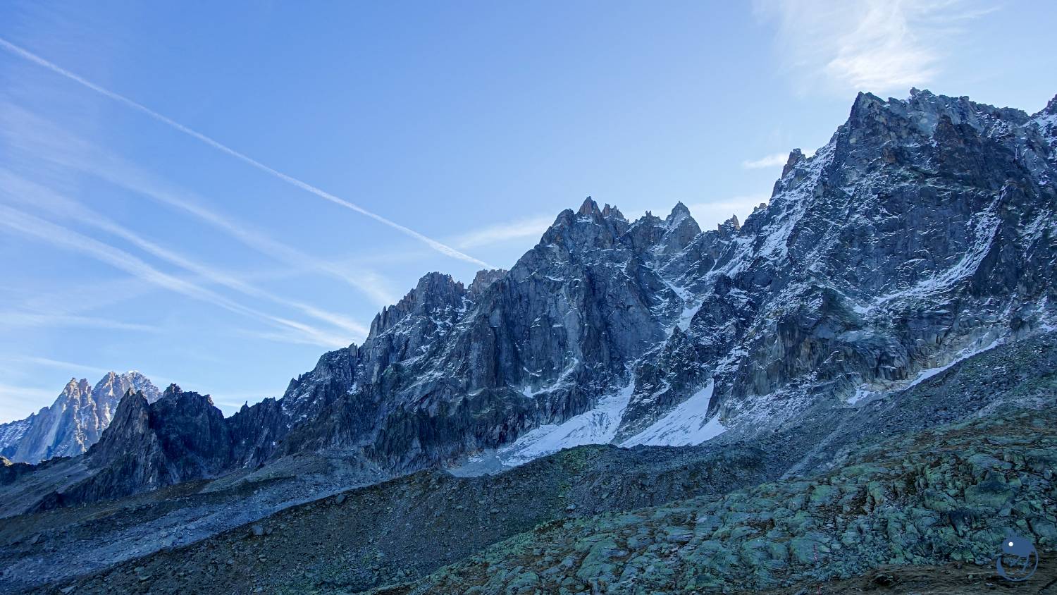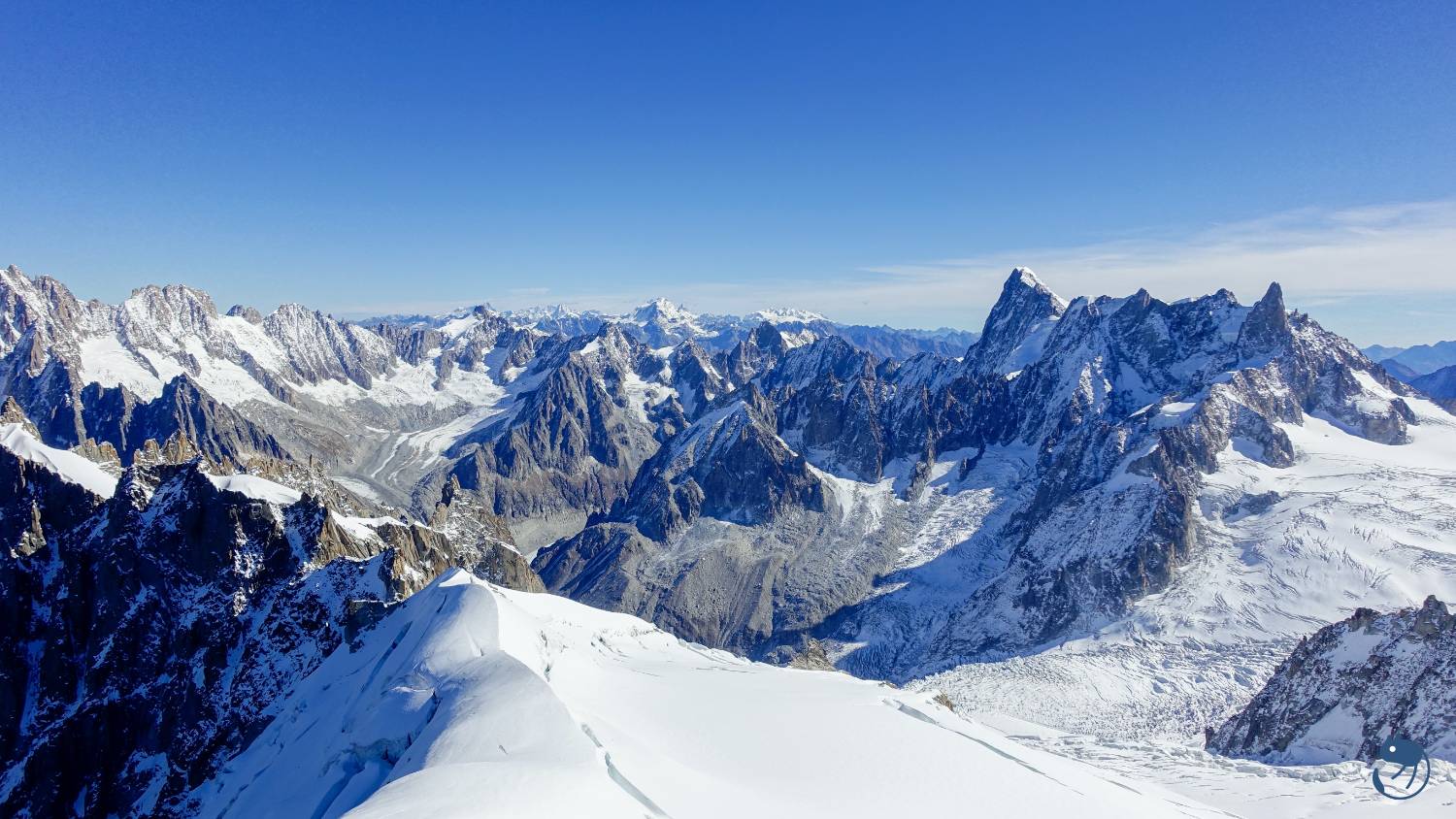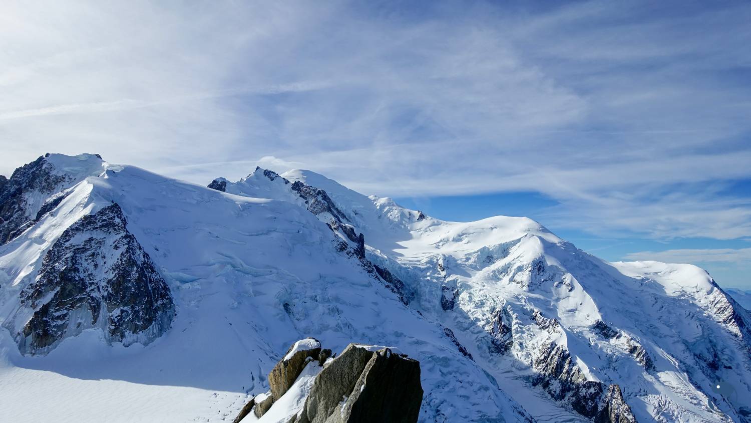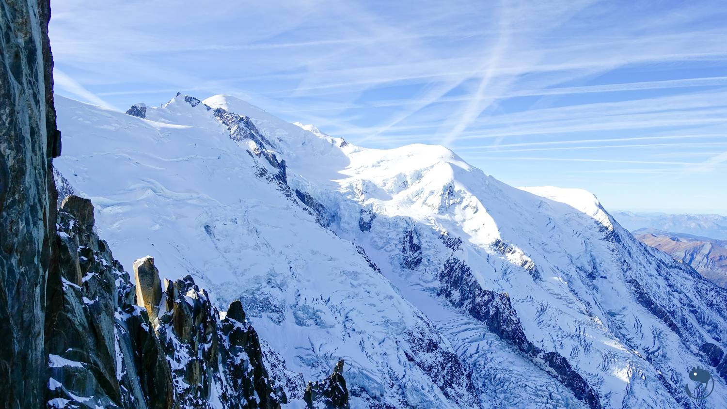 了南針峰與位在法義邊界,海拔3,466公尺的赫爾布隆納峰(Pointe Helbronner)。然後