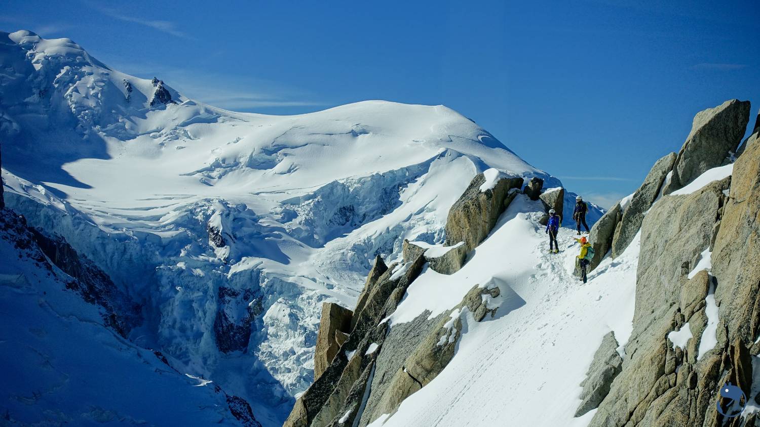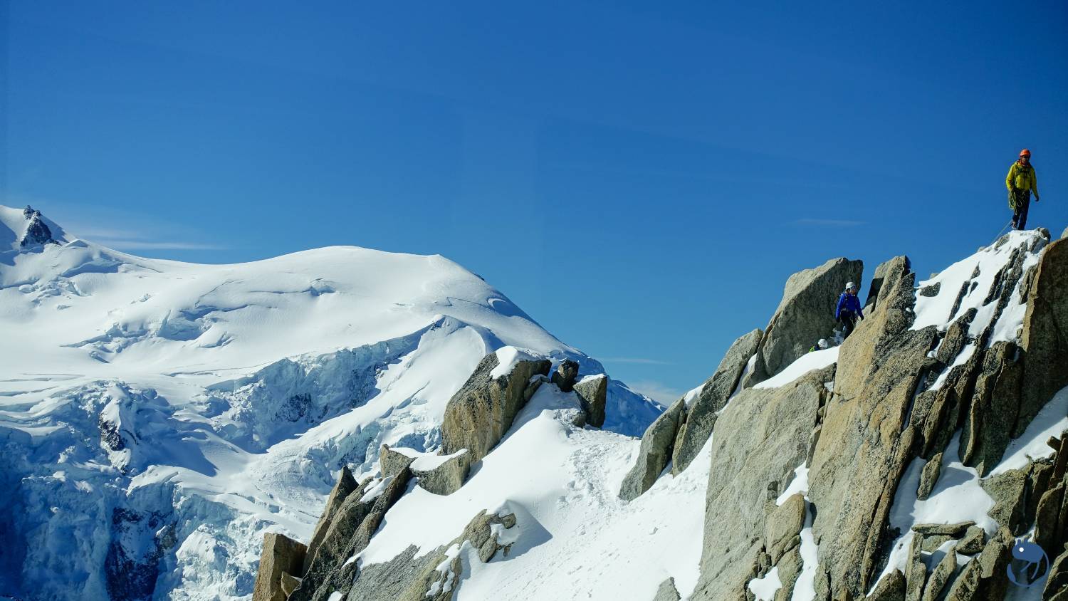 南針峰西南側的宇宙山脊(Cosmiques Ridge)就是一條十分熱門的混合攀登路線。