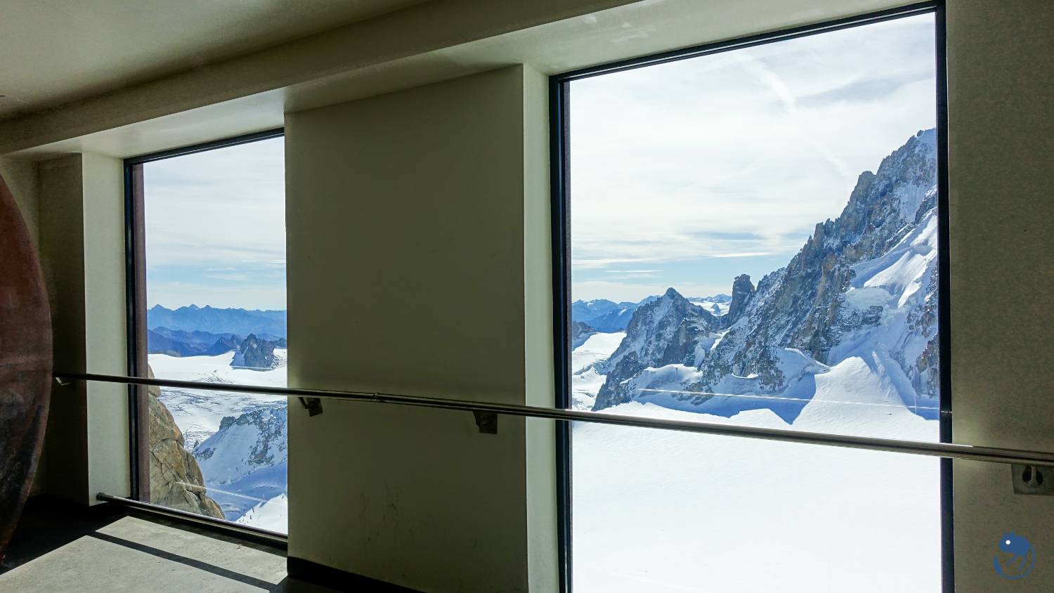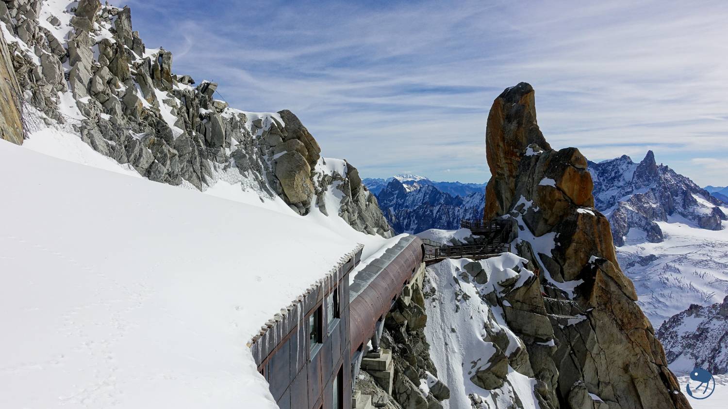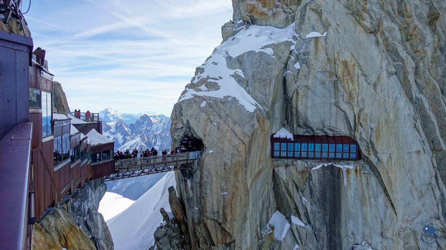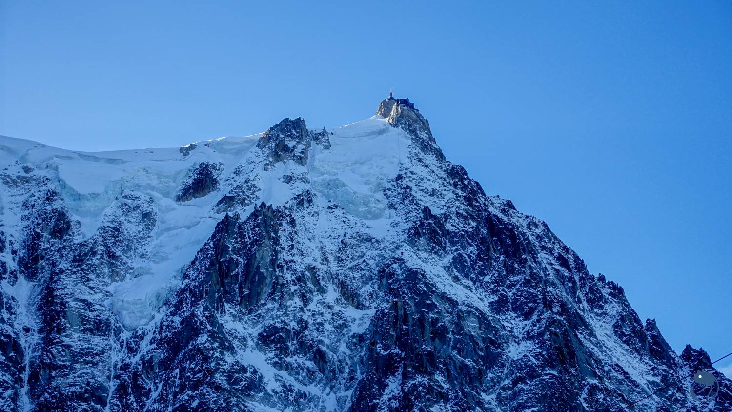 南針峰(Aiguille du Midi)海拔是3,842公尺,而峰頂纜車站在3,777公尺處,從纜車站