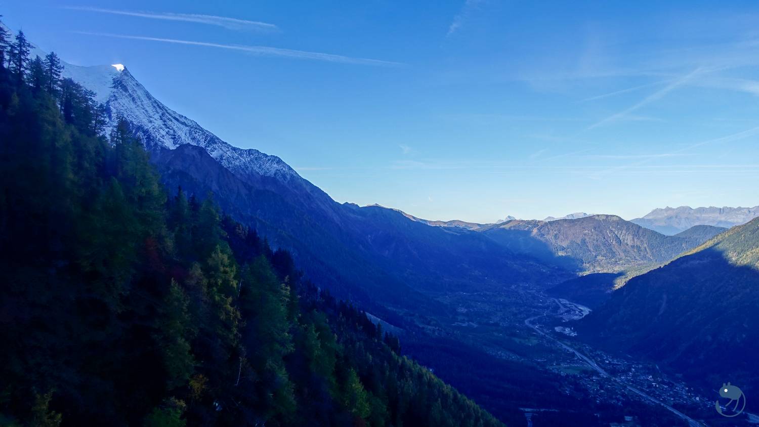山中的小城鎮是夏慕尼東北的阿讓蒂耶爾(Argentière),這山谷就是白朗峰快車(