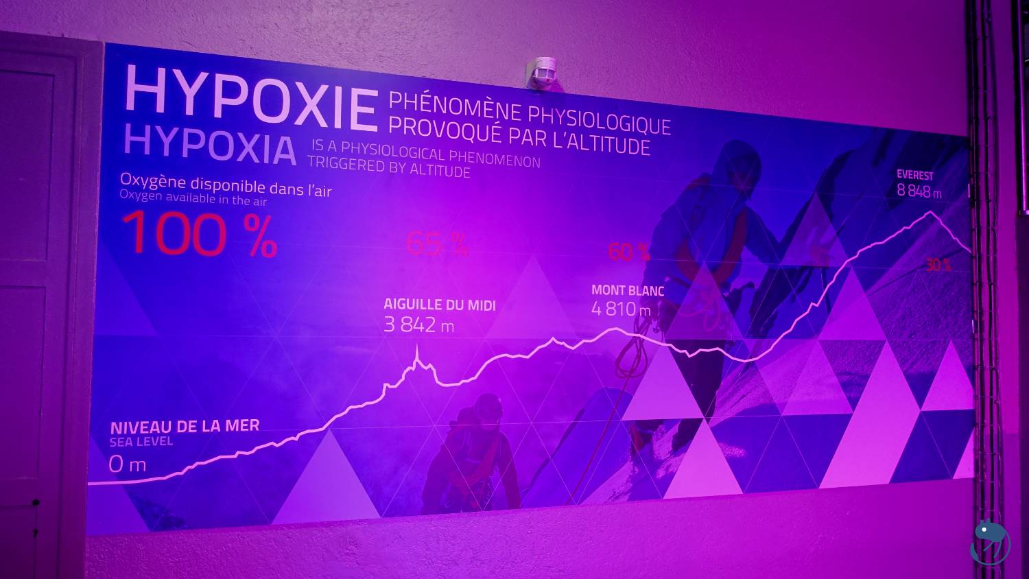 在3,842公尺高的南針峰氧氣含量只剩下65%,所以纜車在20分鐘內急速爬升2,744公尺,