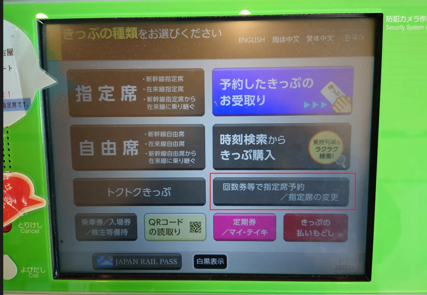 : 或者在JR西日本綠色售票機,以pass劃位。