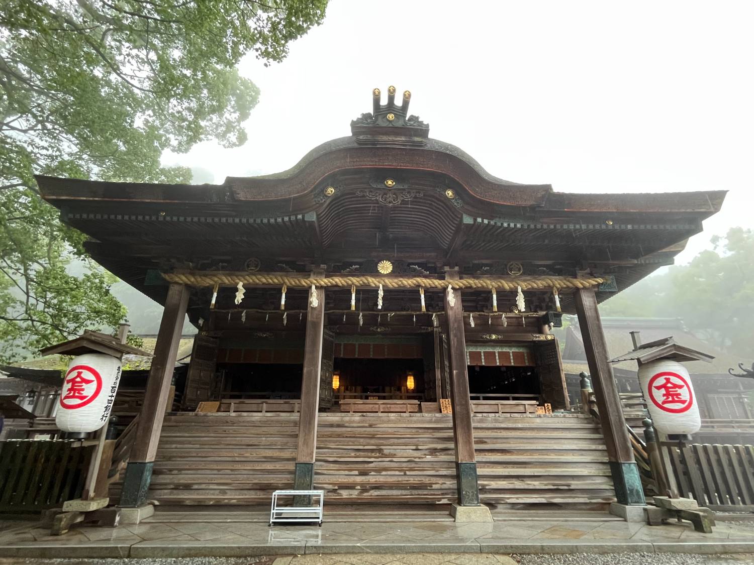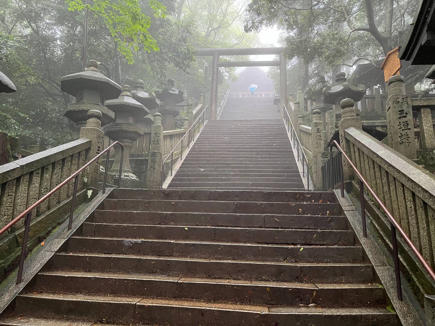 下雨天爬階梯真的很夭壽,石階濕滑還潺潺流水,只爬到785階的本宮參拜就折返。