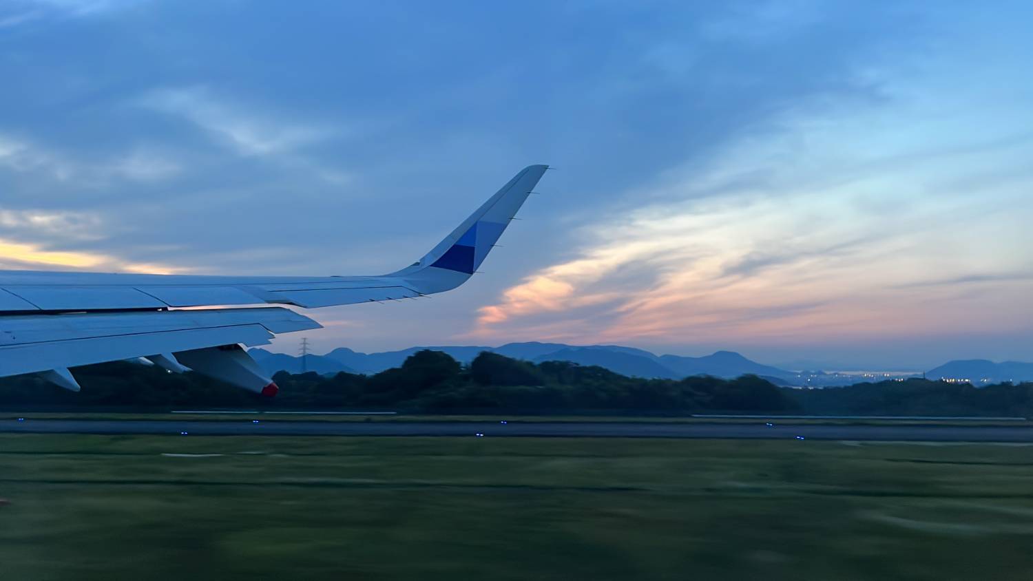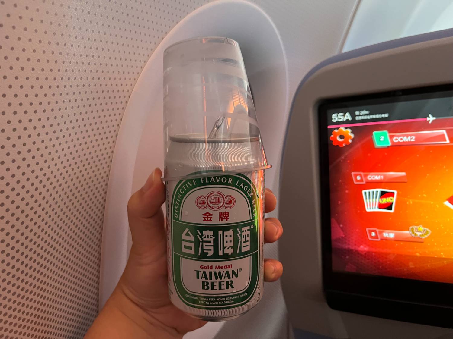 搭乘華航,とりあえずビールをください,飛行路線TPE-TAK,傍晚降落高松。