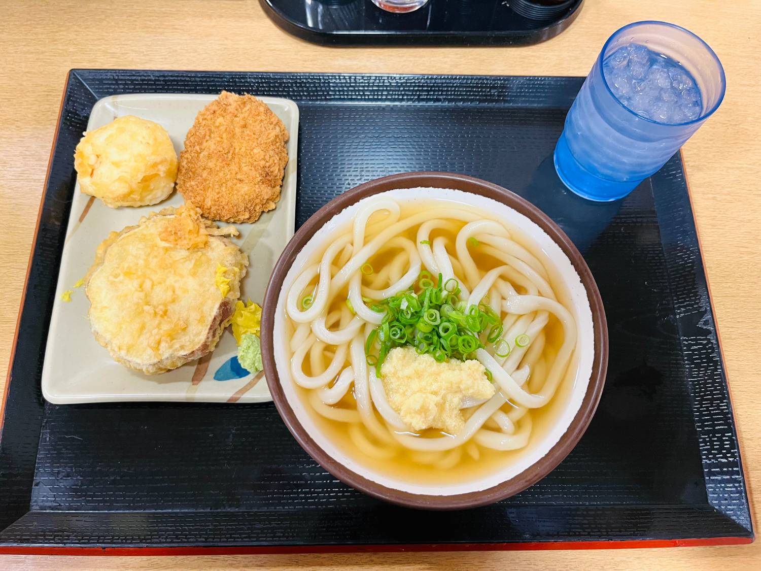 香川大雨下不停,甚至收到河川氾濫的警急警報,總之先吃早餐去,簡單的吃了烏龍麵。