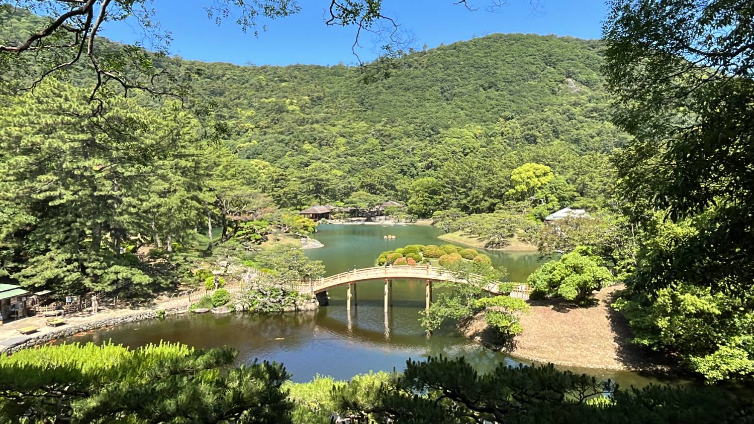 早起退房並向飯店借用腳踏車前往栗林公園,單純因為搭華航有送公園門票而去看看,