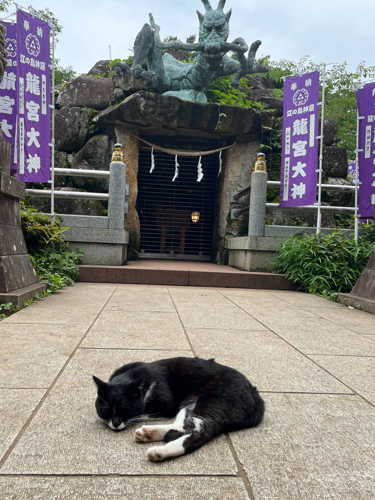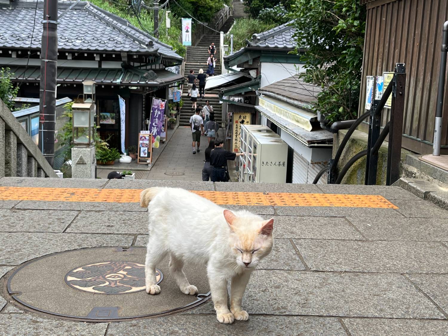 江島神社沿路花開得很漂亮,遇到了兩隻喵喵在出來當小霸王,