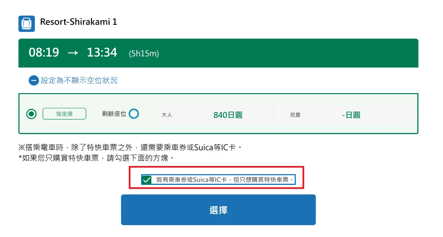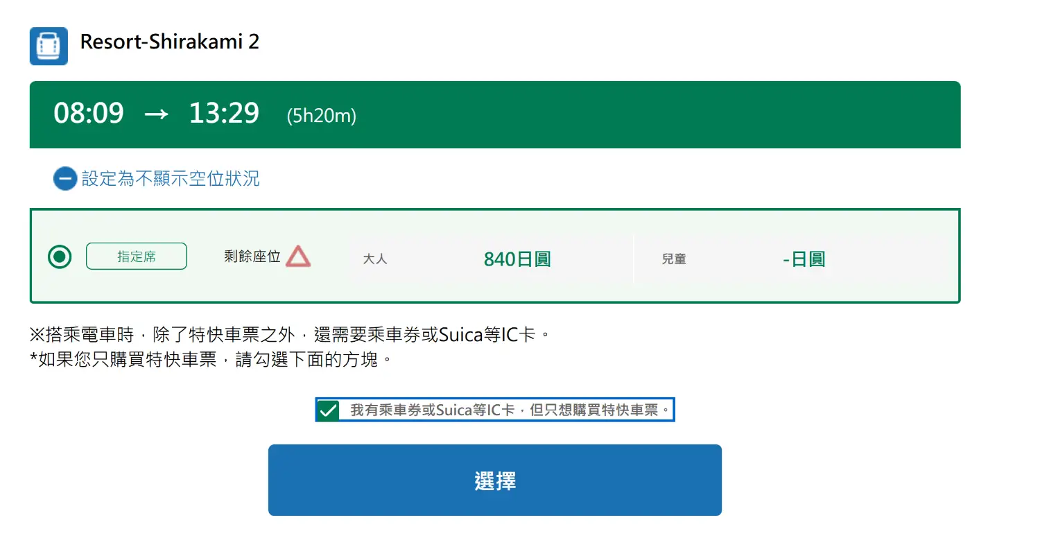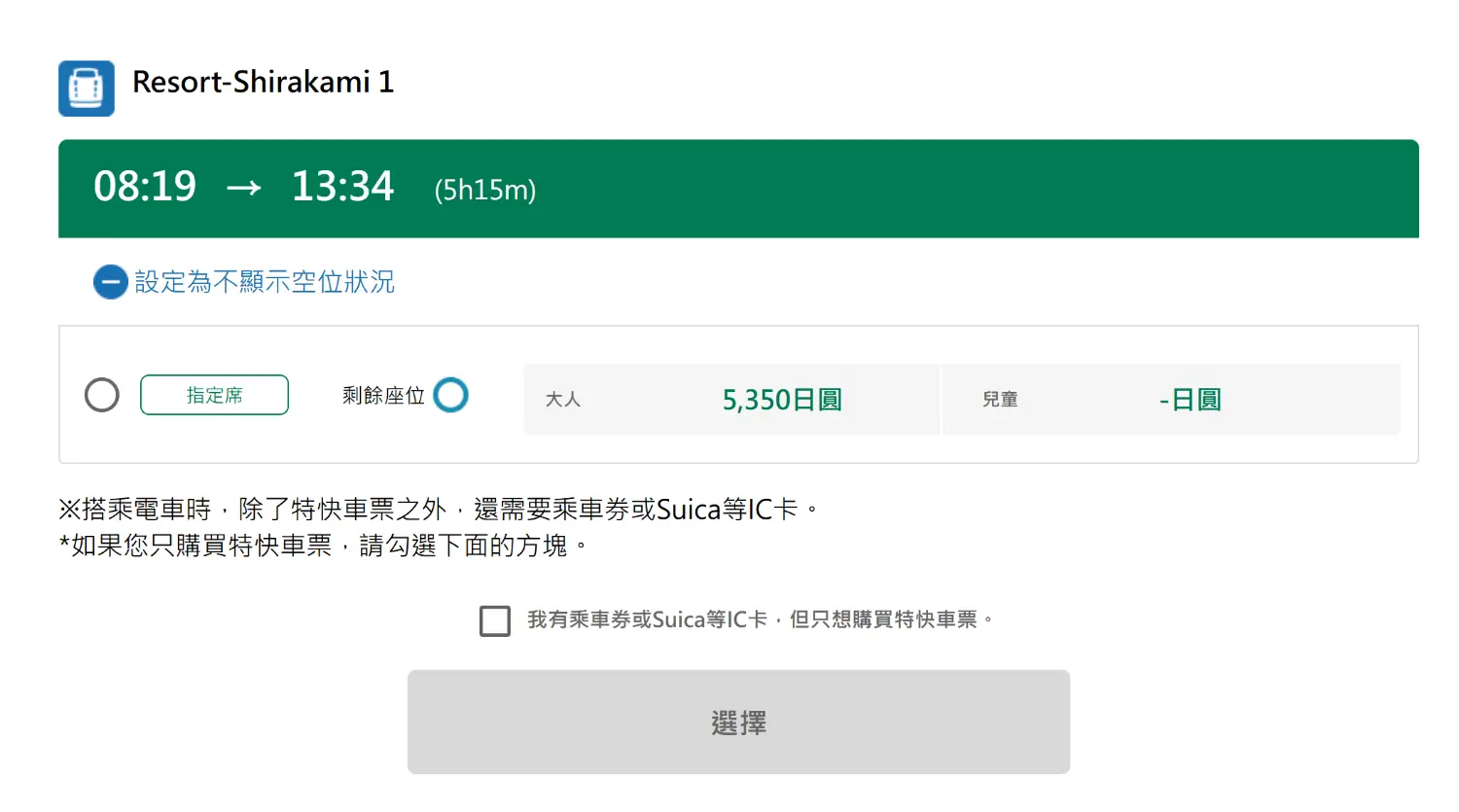 : 但上到JR網站劃位他要我選擇持哪種pass,選項中沒有五能號free pass