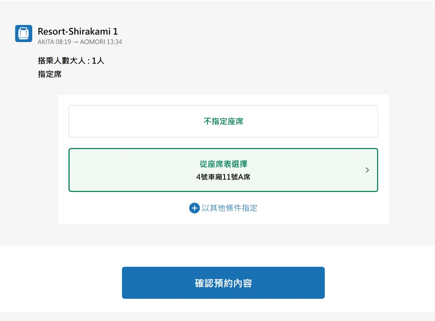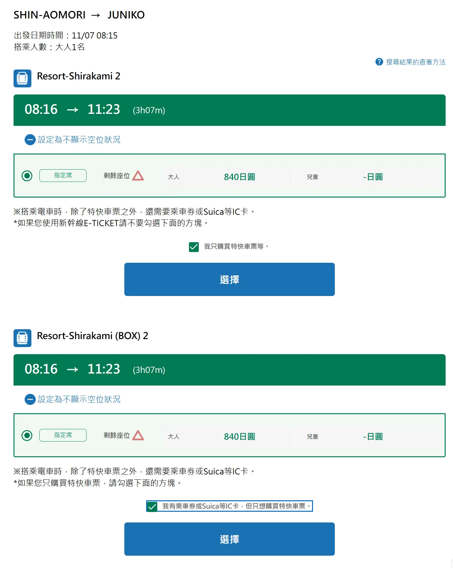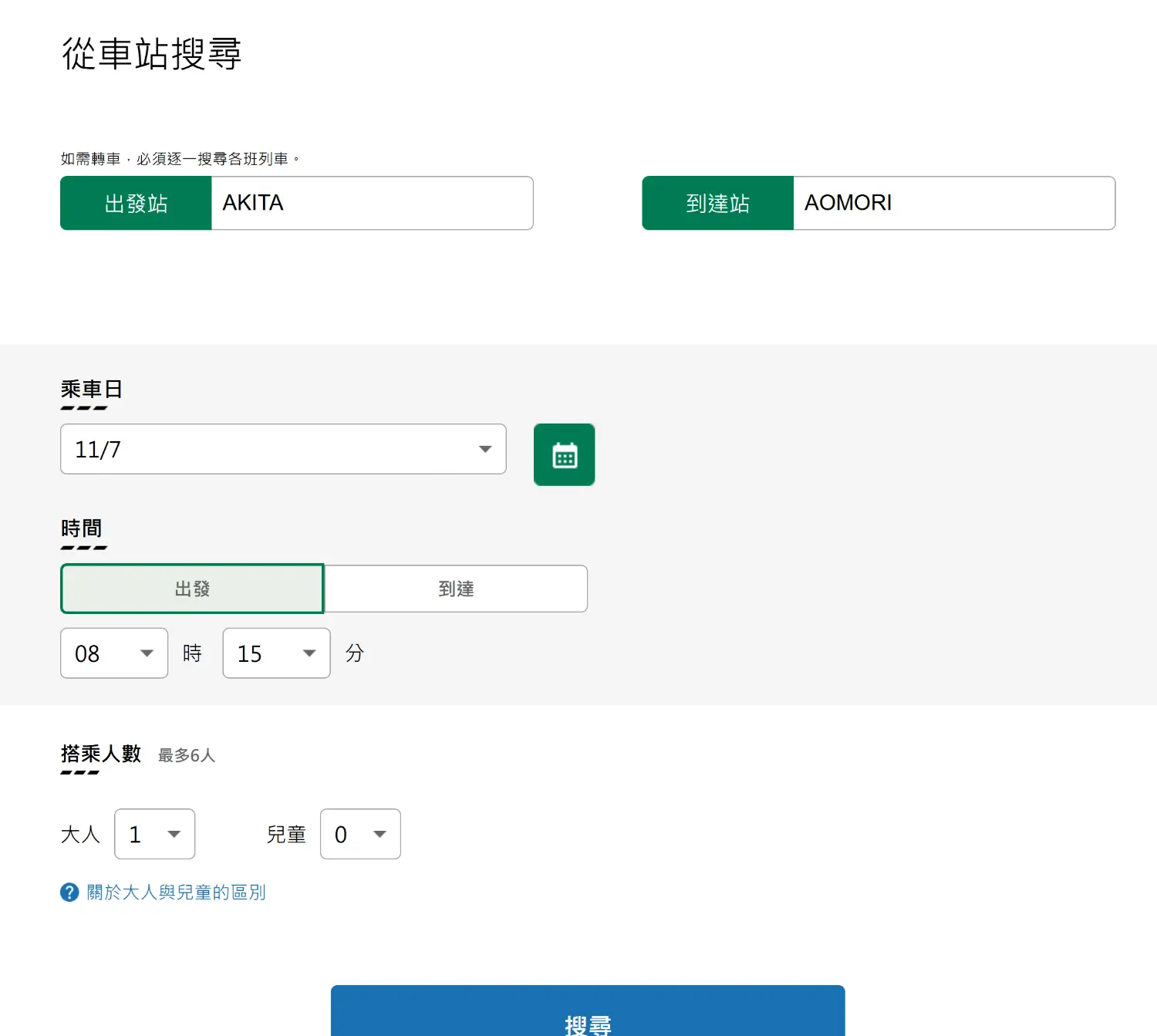也沒有"東日本中文版可以訂但秋田到青森直達班次不會出現,必須分段訂票班次才會出