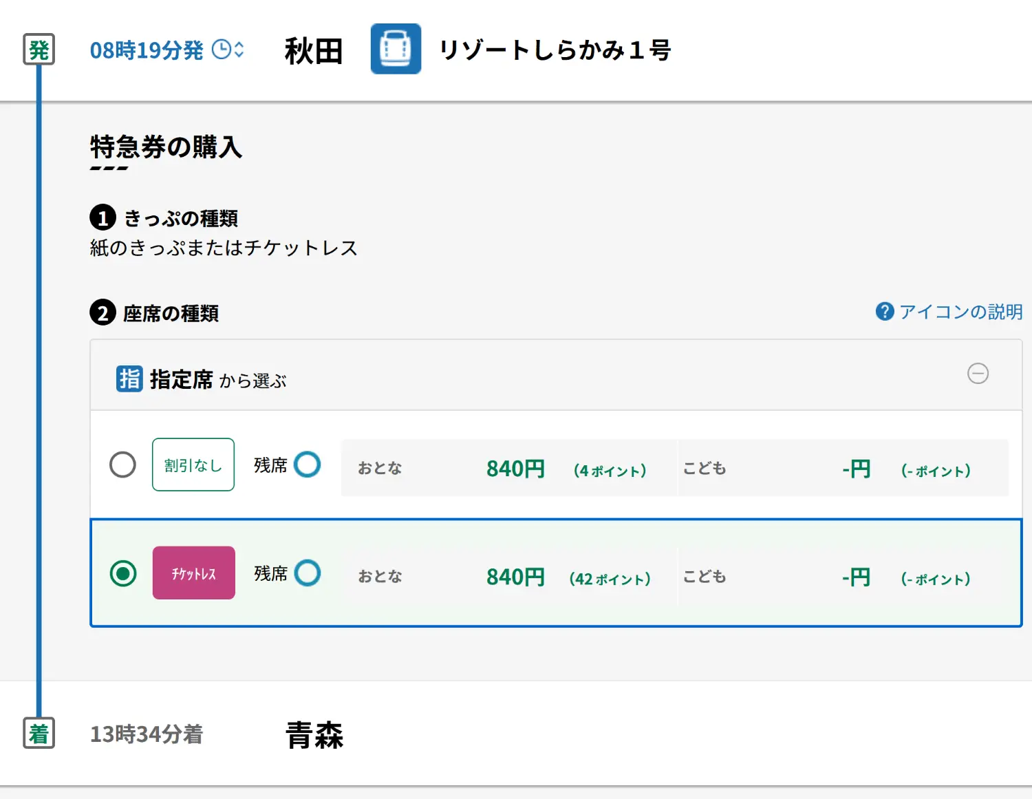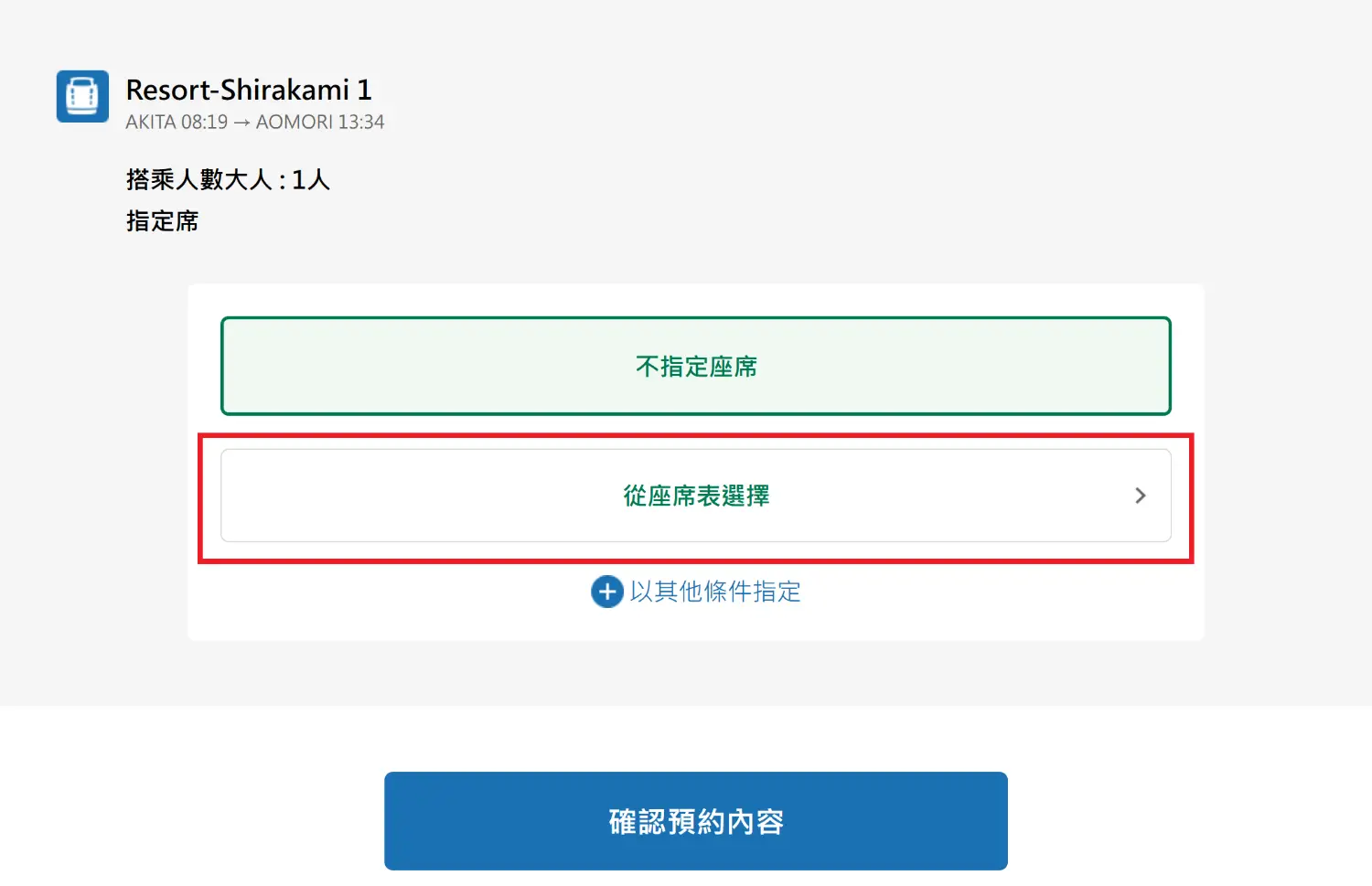 以「秋田(AKITA)—青森(AOMORI)」為例,可直接於網站上完成搜尋、選擇班次及購