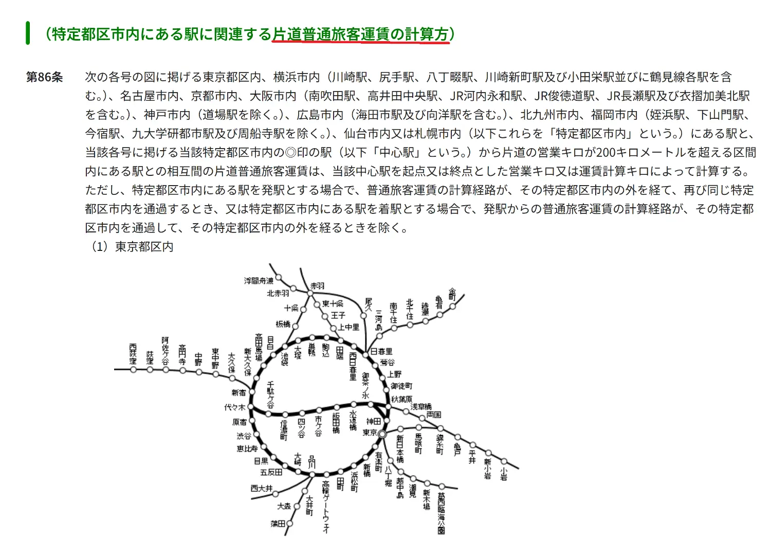 特定都區市內規則,但這是運賃計算規則,而非乘車券效力規則