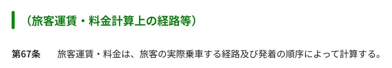 旅客運賃及料金是依旅客實際乗車路線及出發、抵達的順序計算