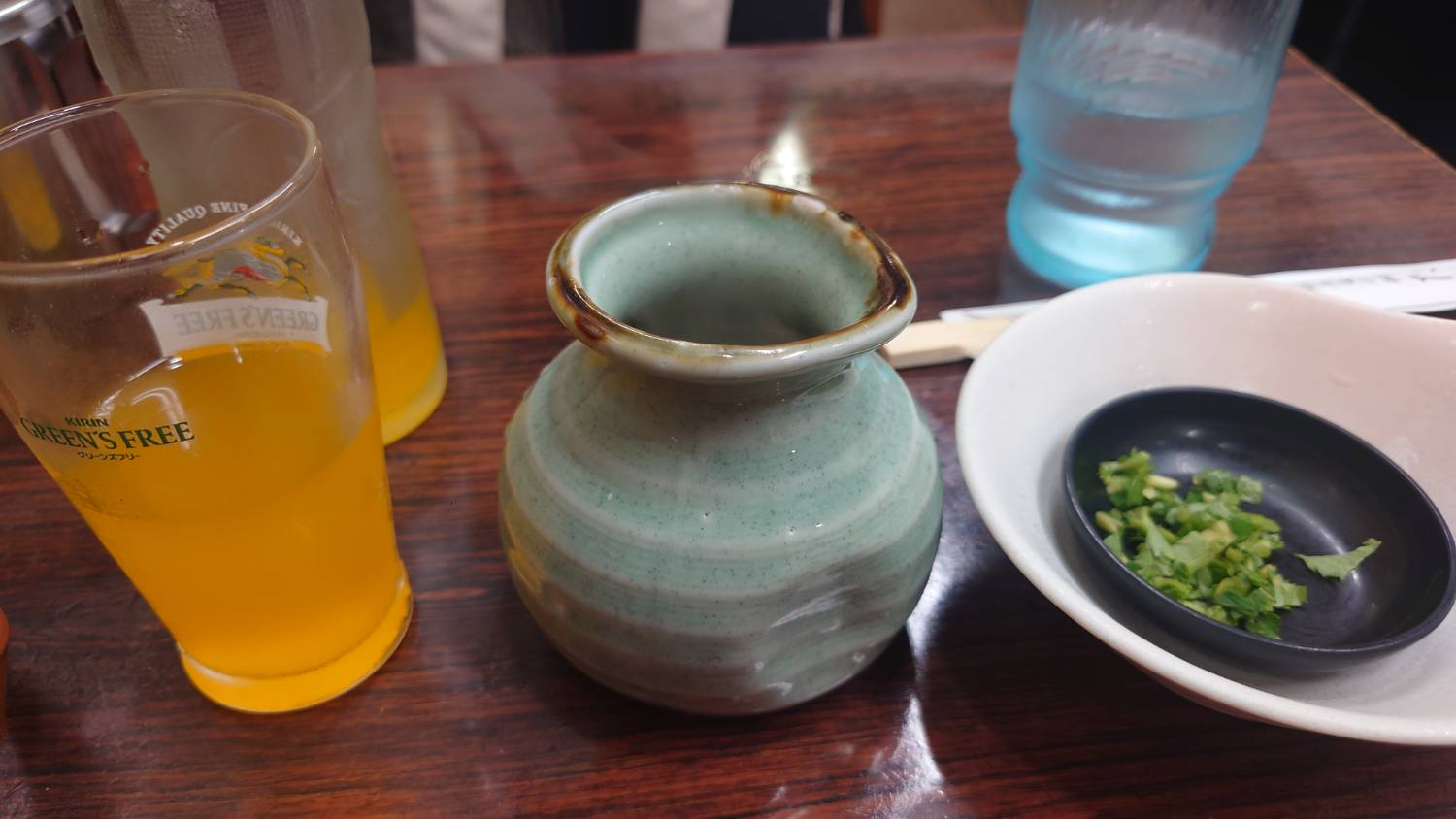 我點了包章魚餡的明石燒,店員先送上飲料跟搭配明石燒使用的高湯,