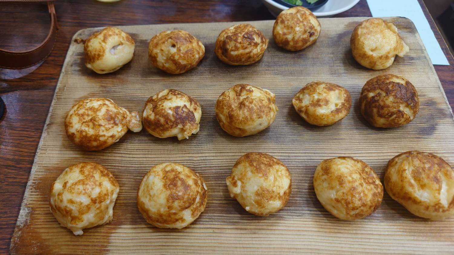 接著熱騰騰的明石燒就送上桌啦!一盤總共有15顆。