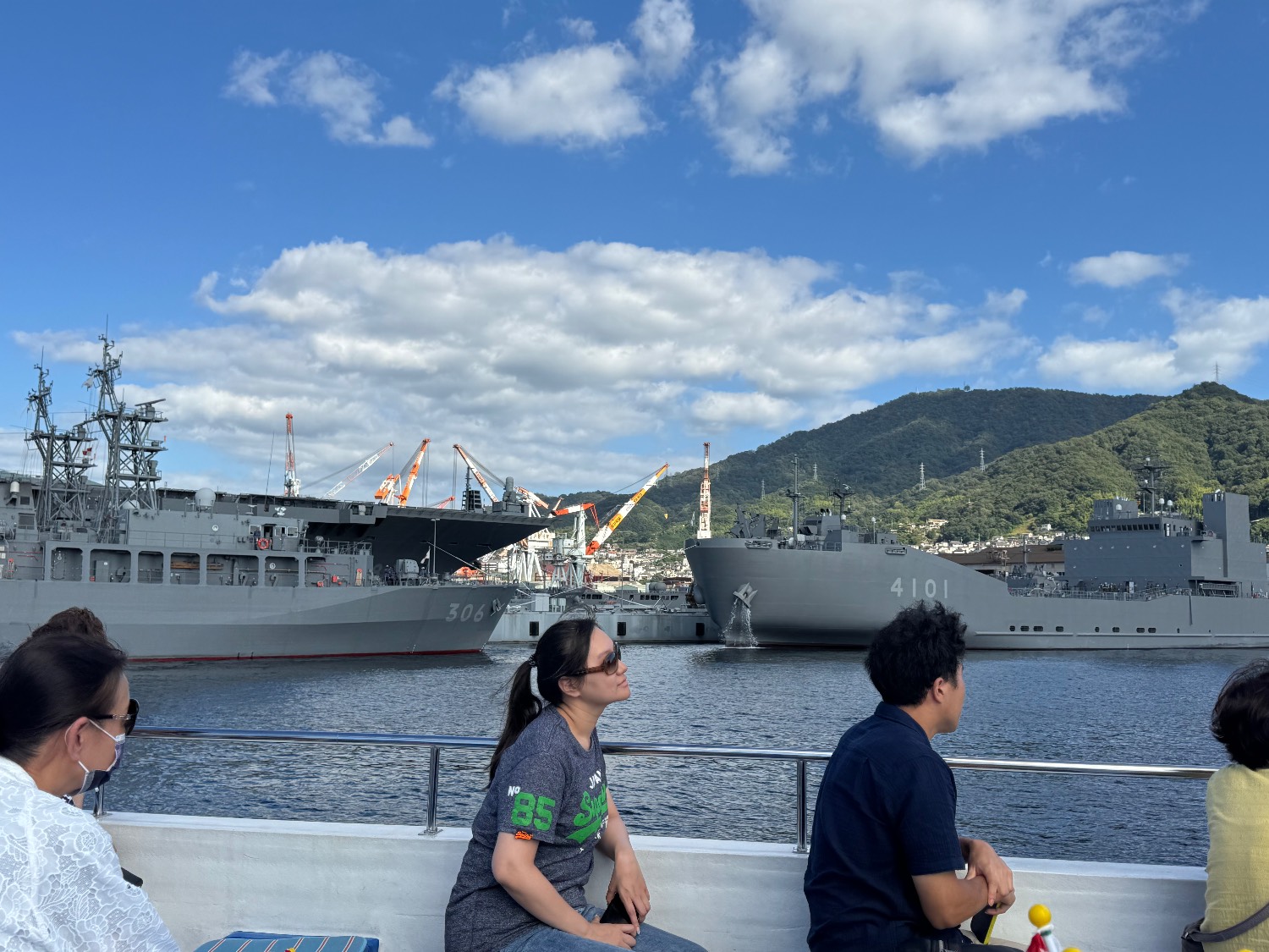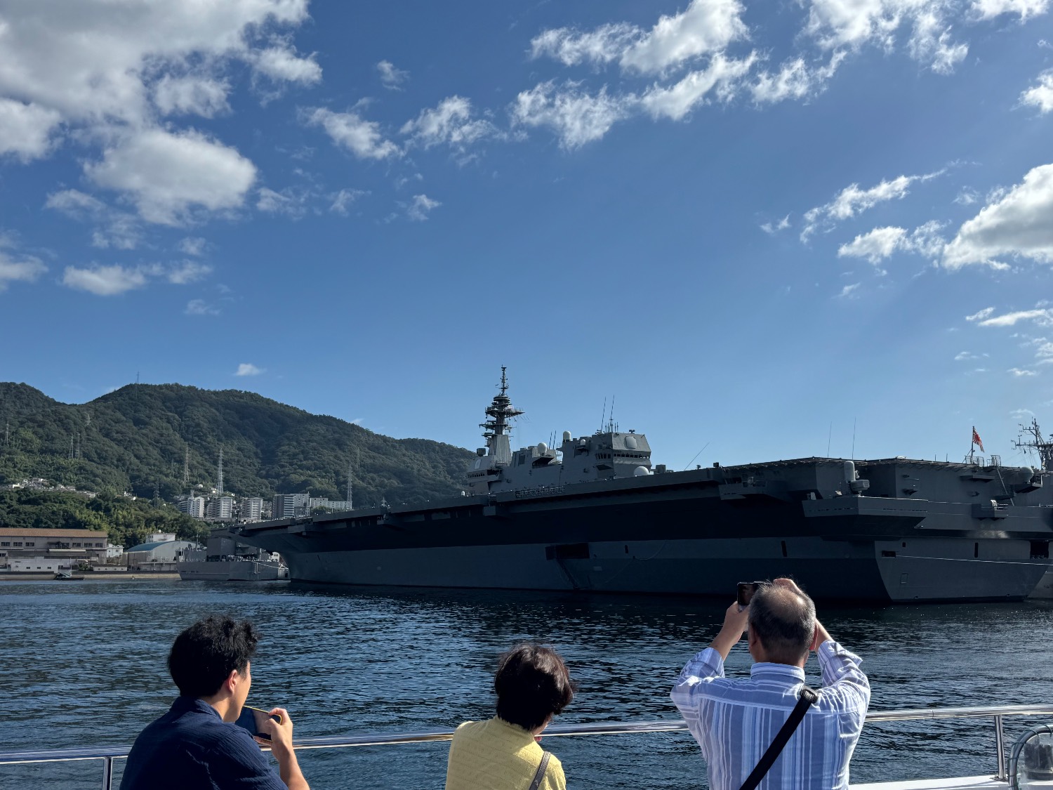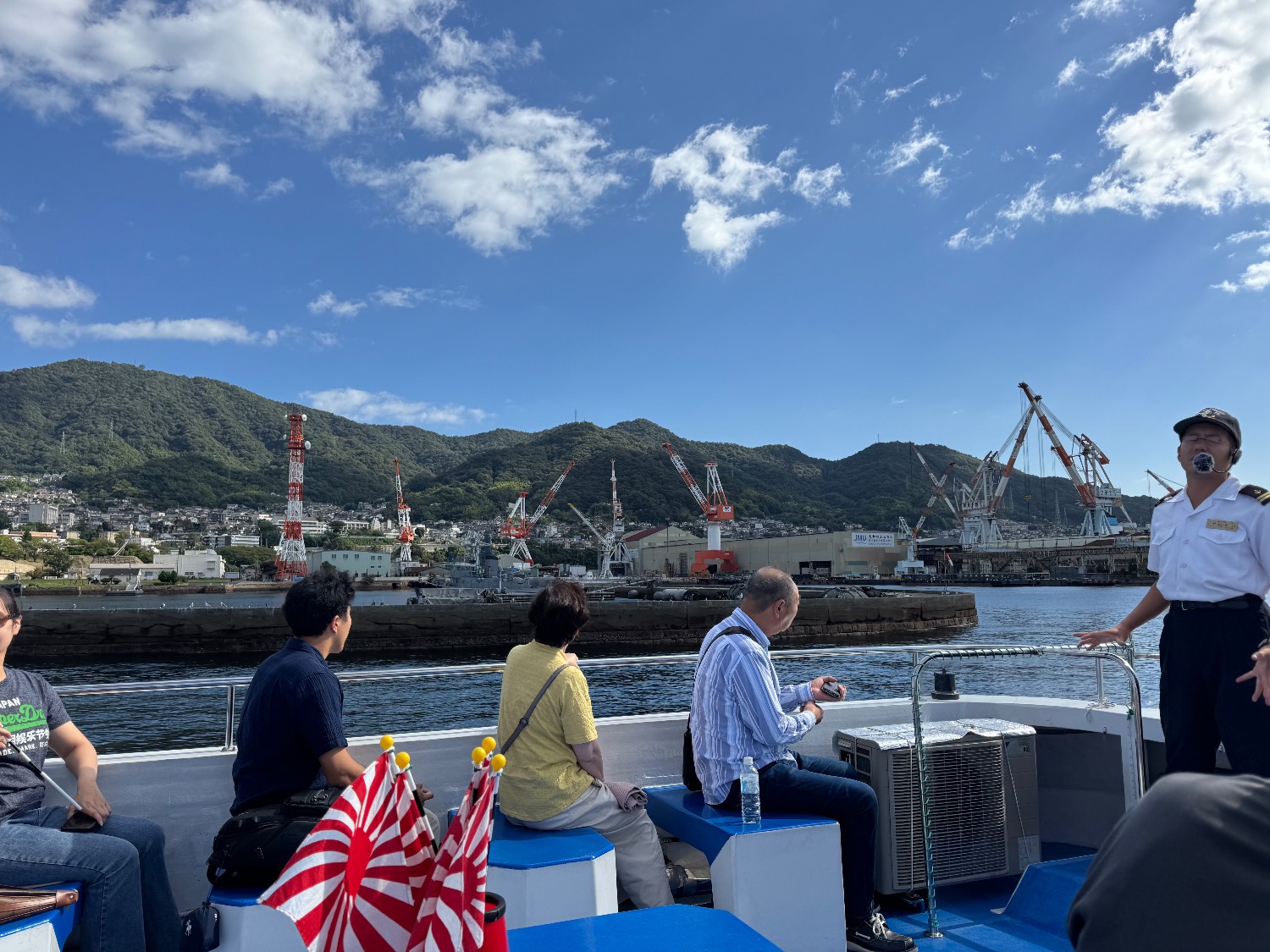 船上有很多海自的旭日旗可以拿,用來和在港裡面的自衛隊官兵們打招呼