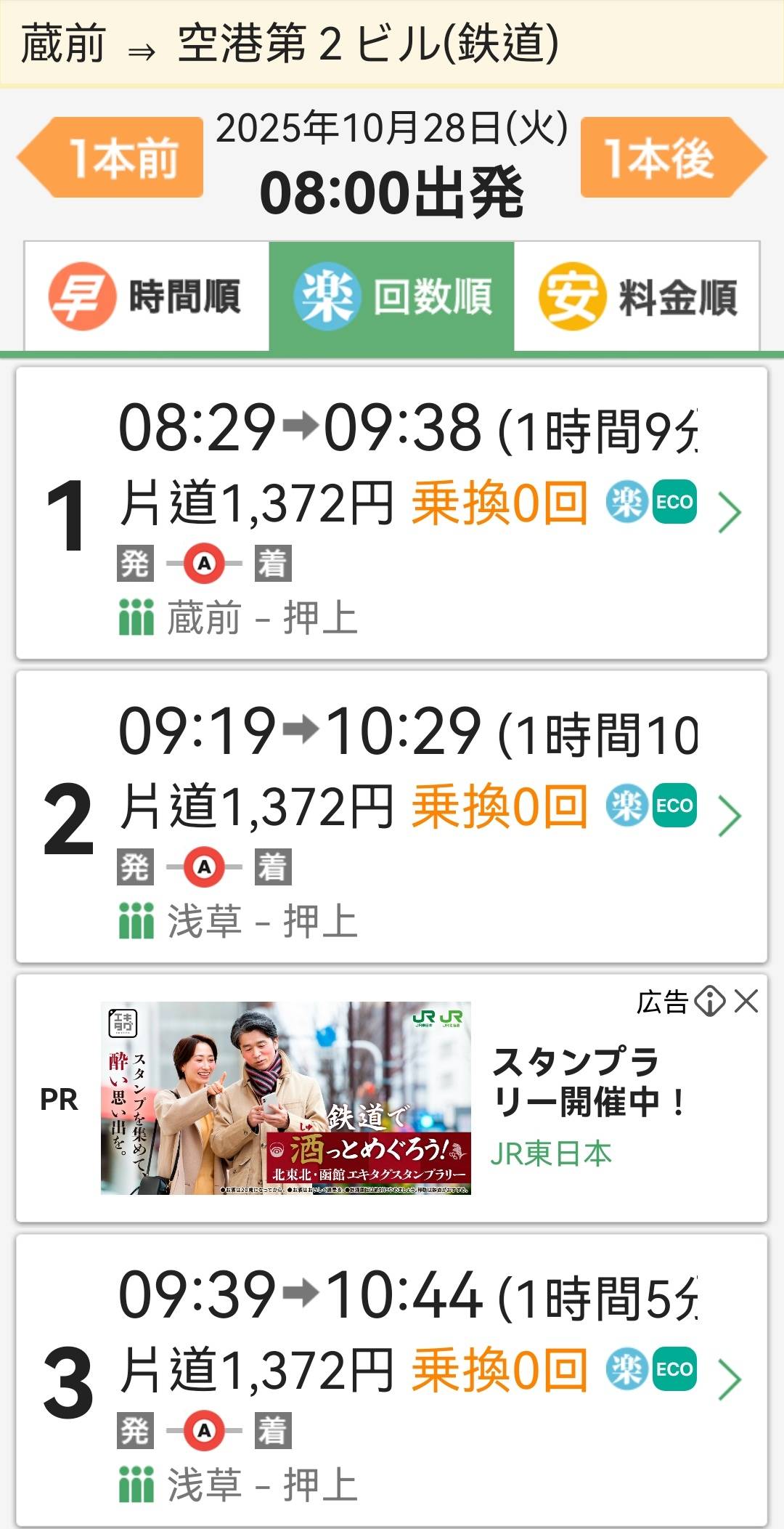 絕大多數藏前直達成田的車都是一個半小時才會到(每站停)