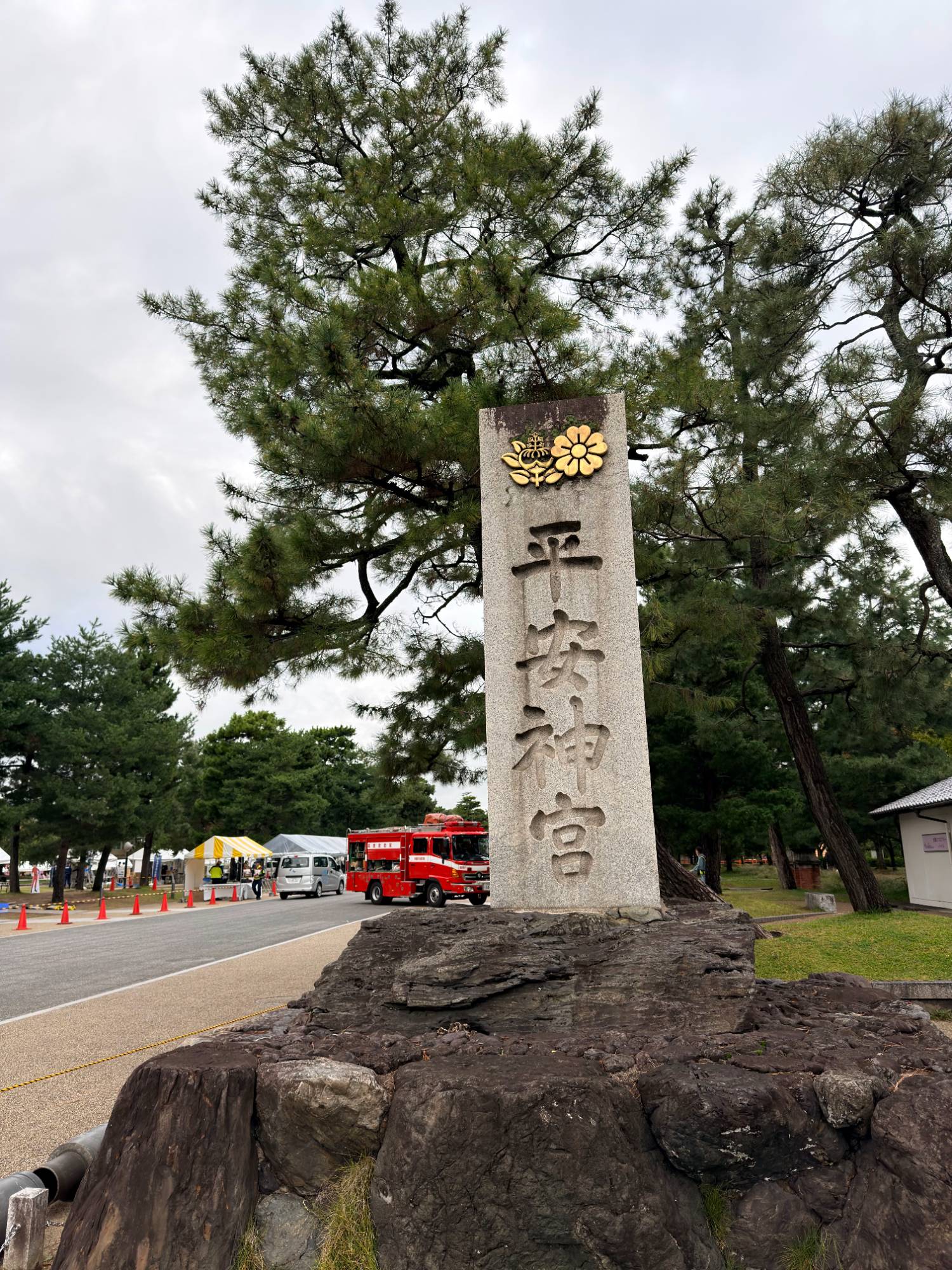 神宮參道這天正巧在舉辦京都消防展演,一大清早就有消防車跟各個防災、救災單位聚集